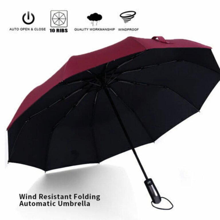 10 Ribs Strong Automatic Umbrella Auto Open Close Travel Compact Windproof Folding Umbrella Black: 3 – 5 Days Free Delivery Only UK