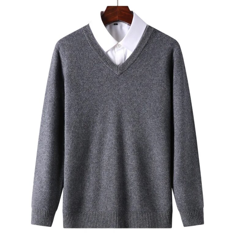Men’s Cashmere Warm Pullovers Sweater V Neck Knit Autumn Winter Fit Tops Male Wool Knitwear Jumpers Bottoming shirt Plus Size