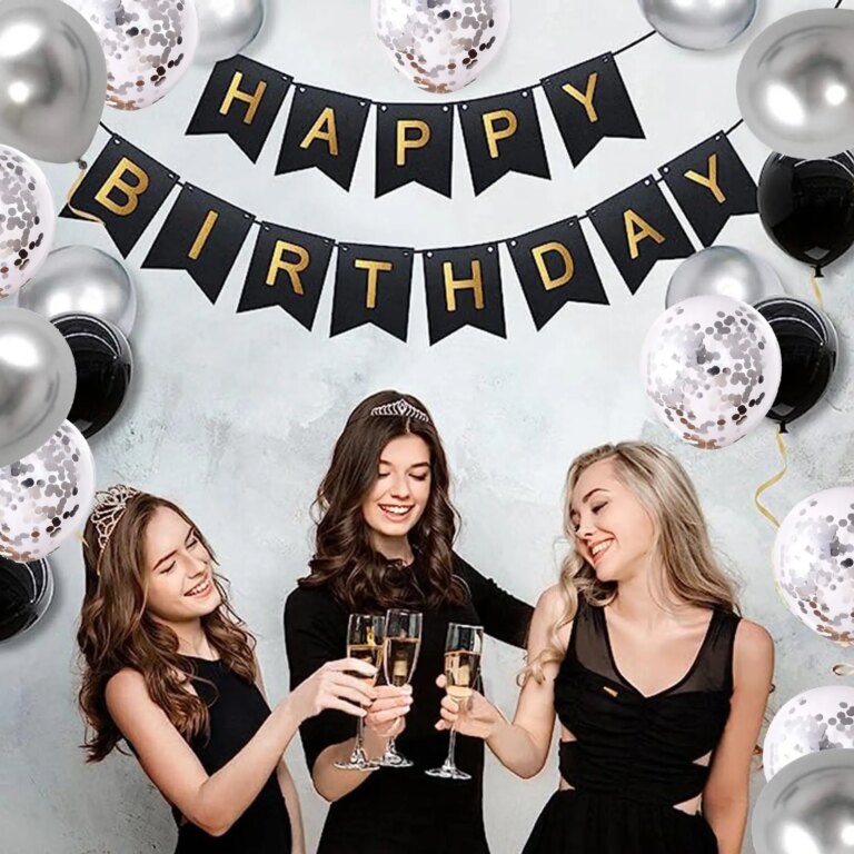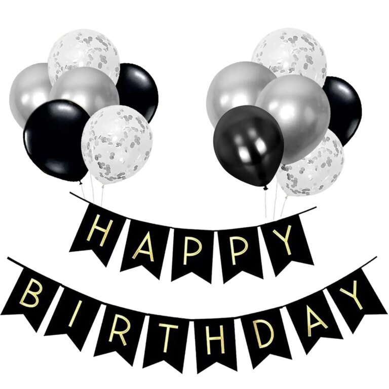 Happy Birthday Banner, Black and silver Party Decorations Happy Birthday Bunting Banners, 12 inch Happy Birthday Balloons Perfect: 3 – 5 Days Free Delivery Only UK