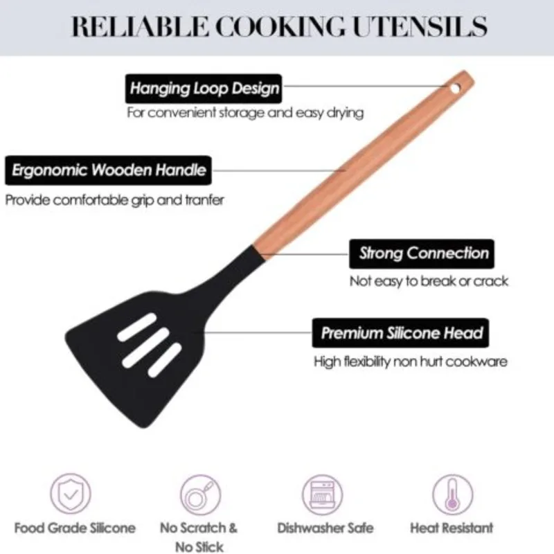 2. Non Corrosive and Durable: The Silicone Cooking Utensils consist of two parts, wooden handle and the premium silicone tips, designed to not melt and bend like plastic utensils,