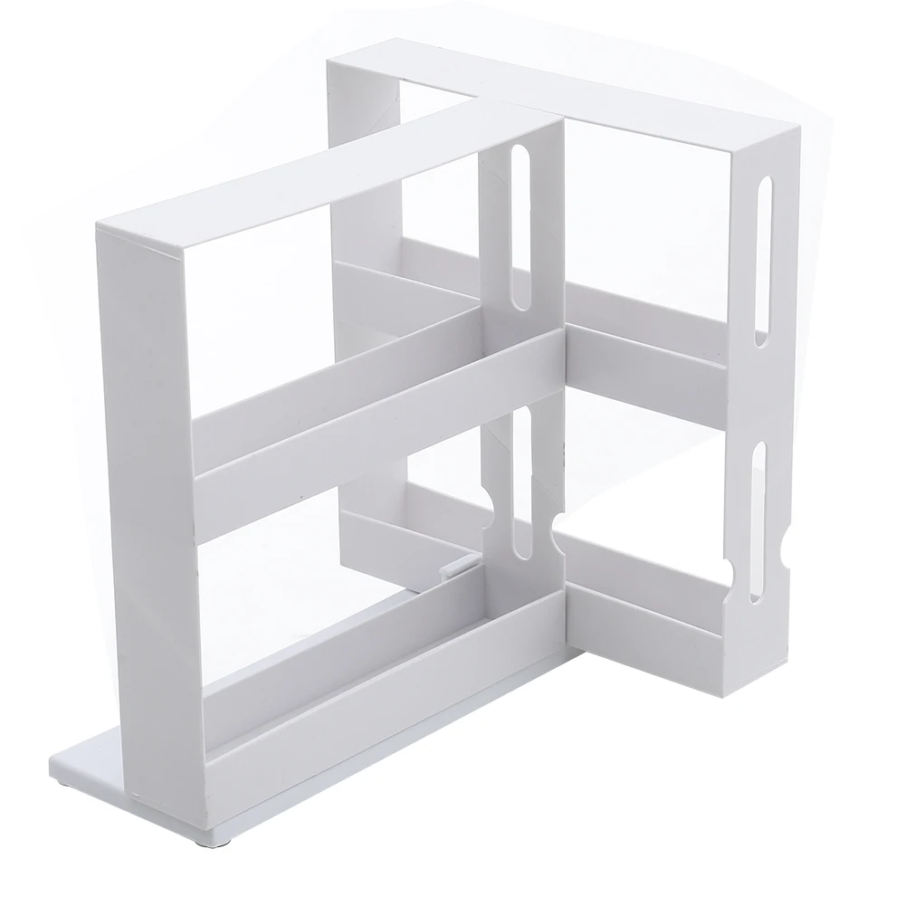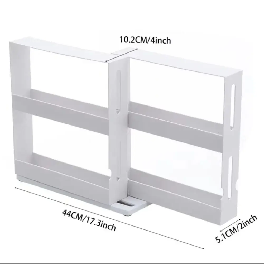 space-saving spice rack can hold your spice jars and small bottles effectively, creating a lot of storage space for your kitchen and making the most of your cabinets! Most importantly, it can also be rotated to a T-shaped/corner stand. This spice rack can be used not only in your kitchen, but also as cosmetic storage in the bathroom.