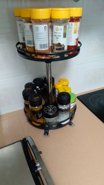 2. Sturdy Rotating Construction:Both tiers of the rotating spice rack are organized with raised edges to prevent any items from slipping off. The two turntables of the lazy rotator rotate 360 degrees smoothly and silently, so no matter how many jars and other items you put on the two tiers of the rotating spice rack, they won’t fall off and cause a mess.