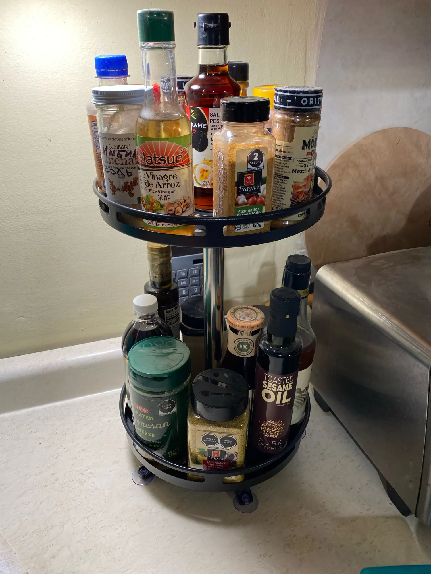 Nice, plenty of room to store spices. Very well.