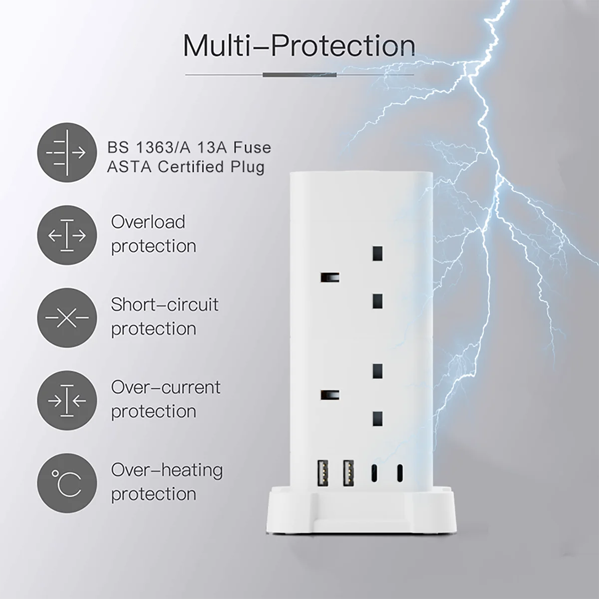 3M Tower Extension Lead with USB Slots, Hotimy 13A 8Way Extension Lead Surge Protection with 2 Type C &2 USB Ports, Home, Office: 3 – 5 Days Free Delivery Only UK