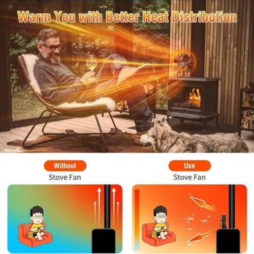 ※【Whisper and Quiet】The noise level of the fan is less than 25db, the only moving part is the blades, which makes the wood stove fan almost totally silent even at top speed.You even do not know the stove fan is there, but you will still feel a breeze, but not wind from your fan.