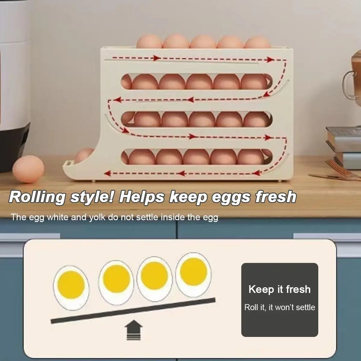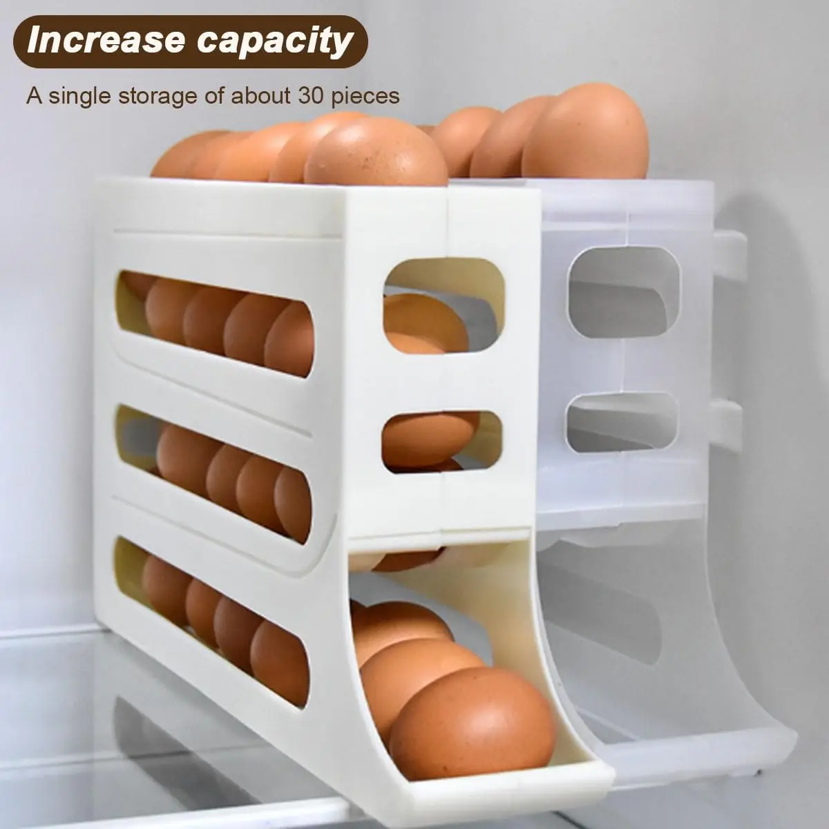 4 Tiers Fridge Egg Rack Large Capacity Egg Dispenser for Refrigerator,Auto Rolling Fridge Egg Organizer For Kitchen