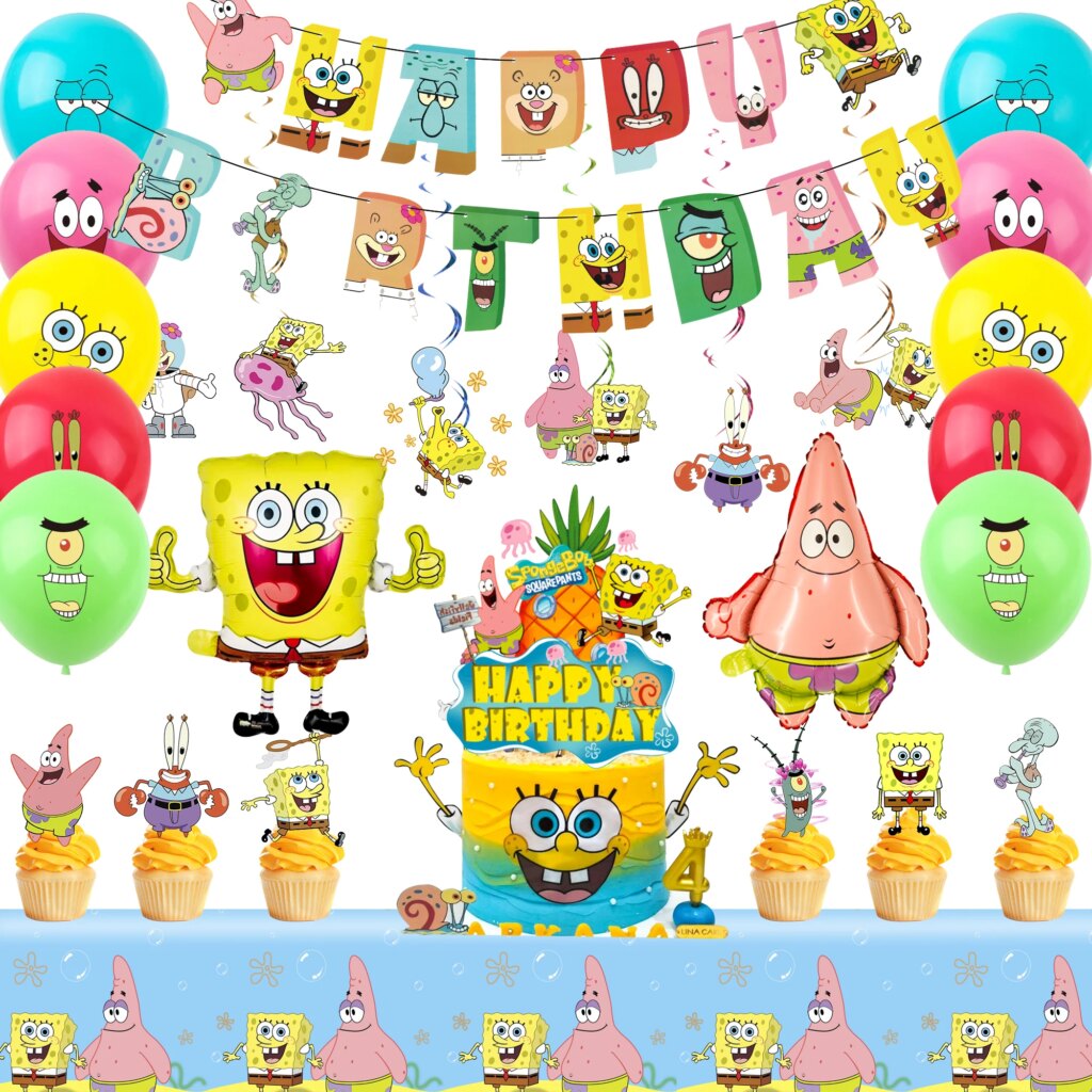 SpongeBob Birthday Party Supplies,38pcs SpongeBob Birthday Decorations-SpongeBob Party Banner Balloons Cake Toppers Tablecloth..: 3 – 5 Days Free Delivery Only UK