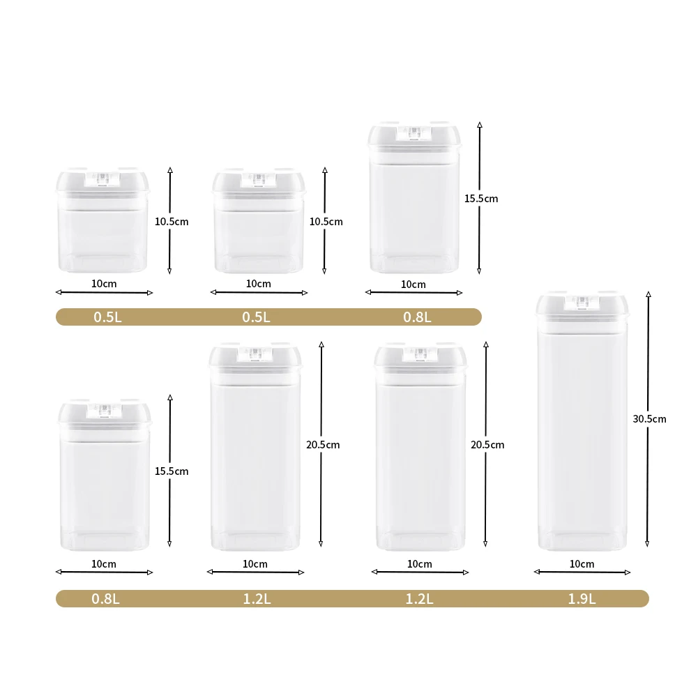 These 7pcs food storage containers are crafted from high-quality PS and PP materials, ensuring durability, safety, and easy cleaning. Featuring clasp lids and practical labels, they make the storage and retrieval of ingredients clear and orderly, greatly enhancing your kitchen management efficiency. With a variety of sizes, it meets all your storage needs, from small seasonings to larger ingredients. Its sleek design adds a modern touch to your kitchen, combining practicality with aesthetic appeal for a more refined, enjoyable home experience.