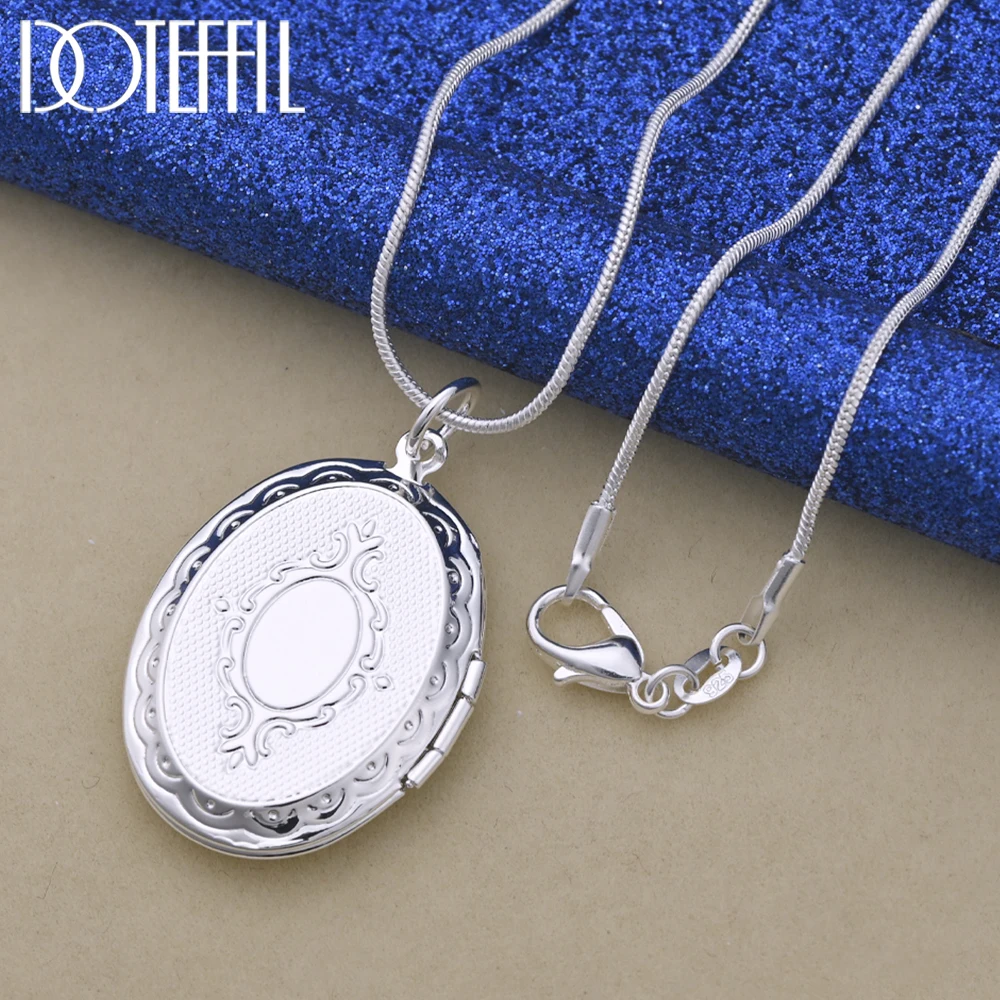 DOTEFFIL 925 Sterling Silver Oval Round Photo Frame Pendant Necklace 18/20-28/30 Inch Snake Chain For Woman Man Wedding Jewelry