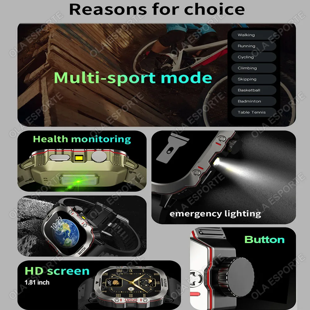 2025 Military Smartwatch GPS Men Flashlight Waterproof Outdoor Sport Tracker HD Bluetooth Calls Smart Watch New For Android IOS