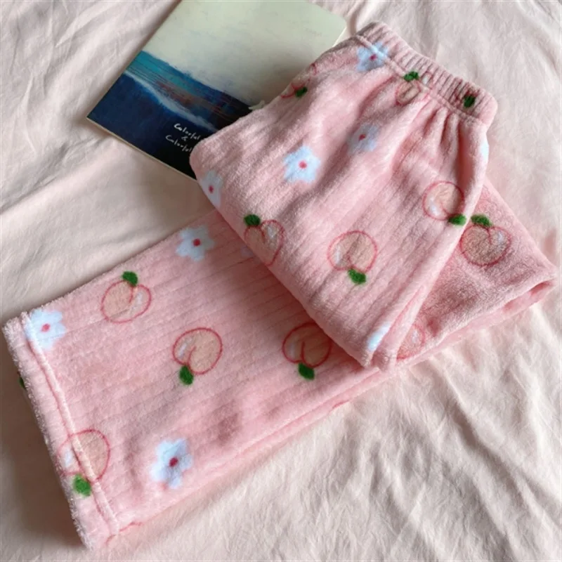 Autumn and Winter Women’s New Pajama Pants Girls Student Sleeping Pants Warm Pants Coral Fleece Pants Thickened Warm Casual Home