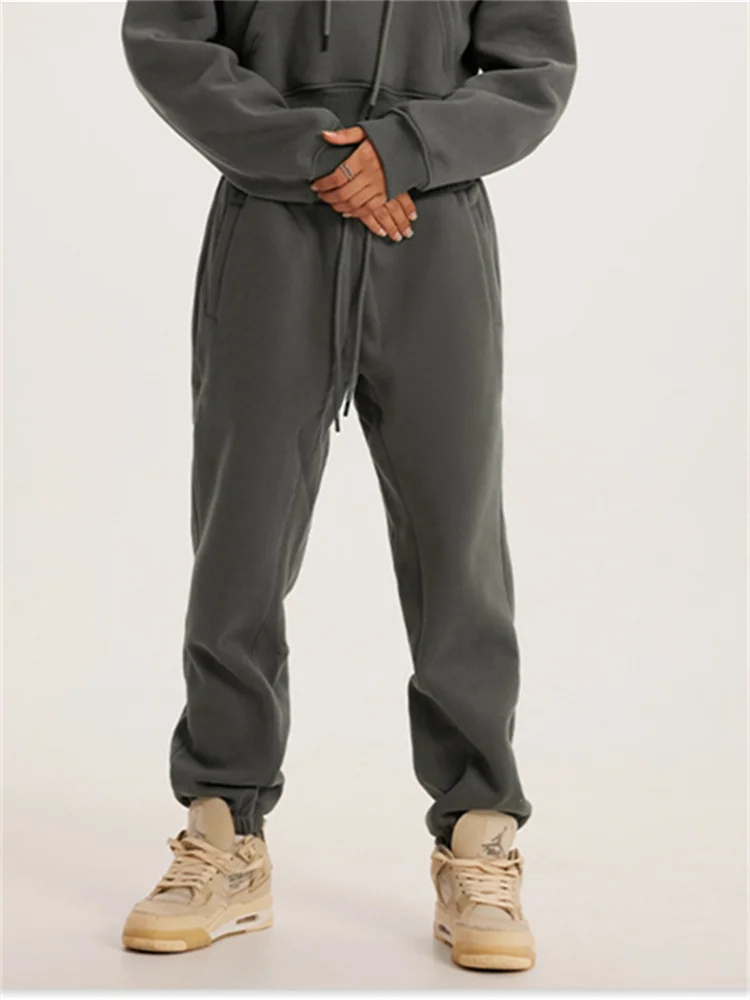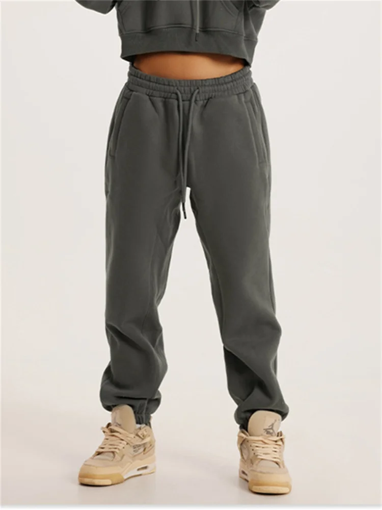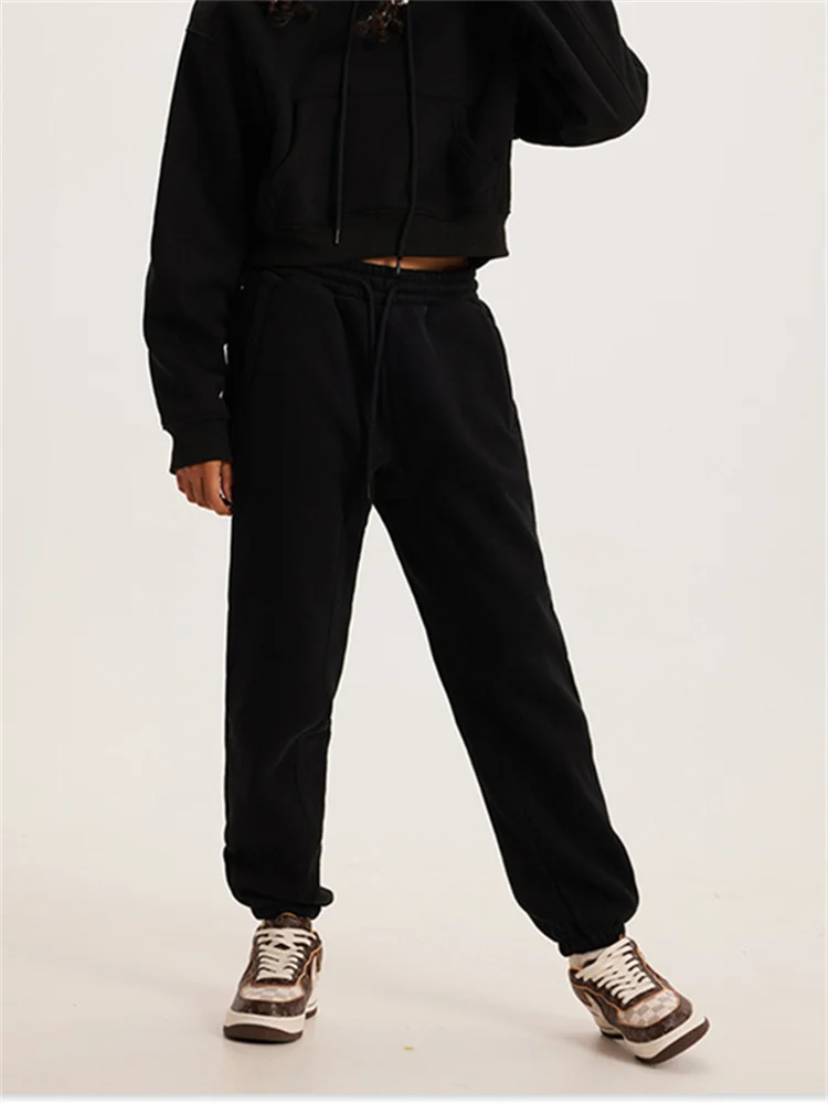 Casual Drawstring Sport Pants Women Winter Fleeced Lined Pocket Fashion Solid Jogger Streetwear Female Long Trousers Sweatpants –