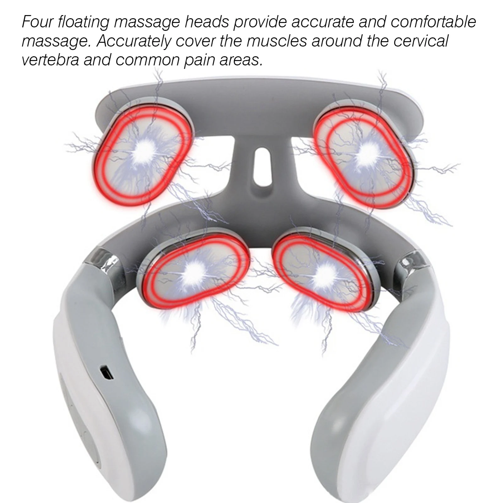 Cervical Massager 16 Modes USB Smart Pulse Heating 4 Head Neck Massager for Neck Tension
