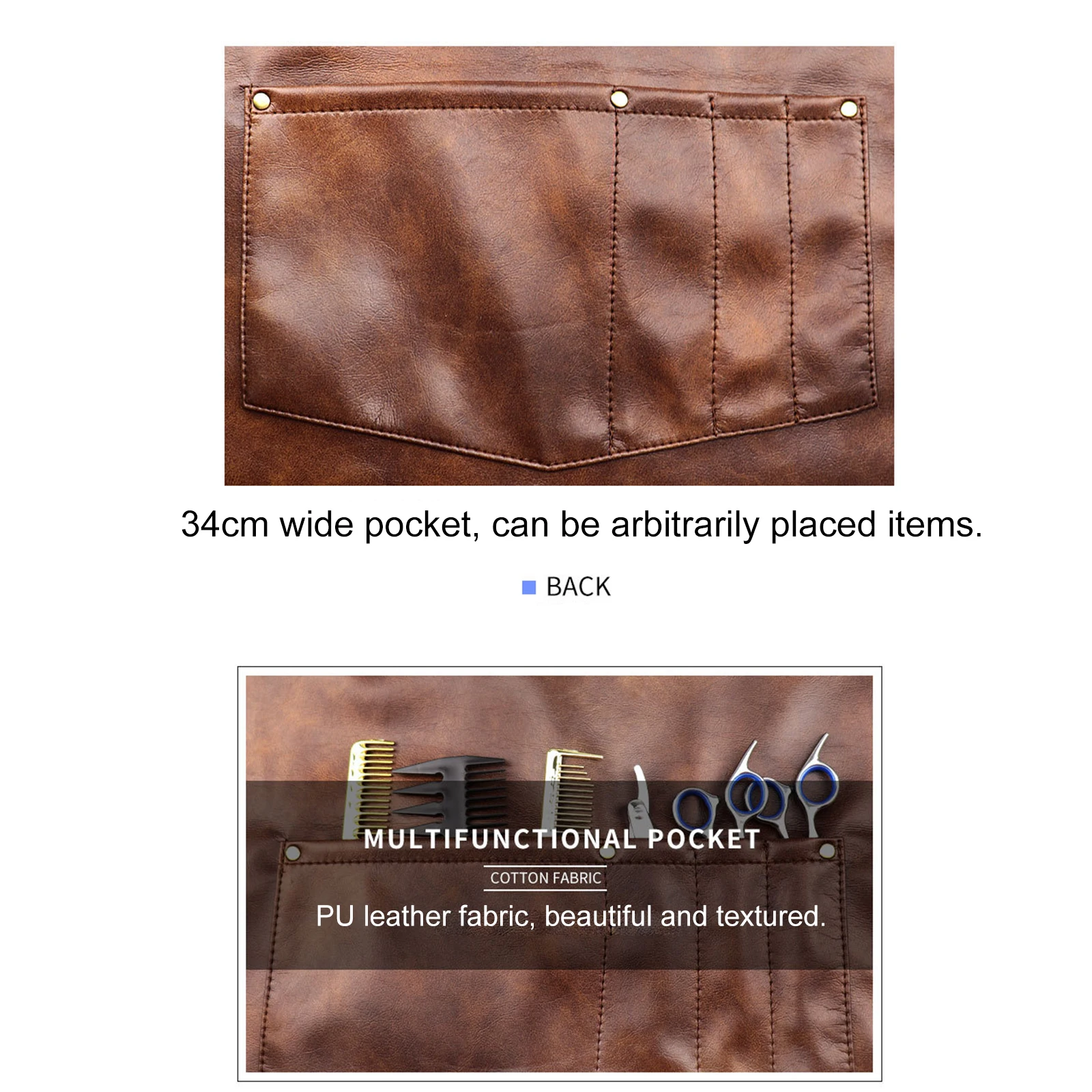 Chef Apron for Men Women Waterproof PU Leather Apron with Pockets Cross-Back Straps for Kitchen BBQ Cooking Barber Barista Apron Handworking