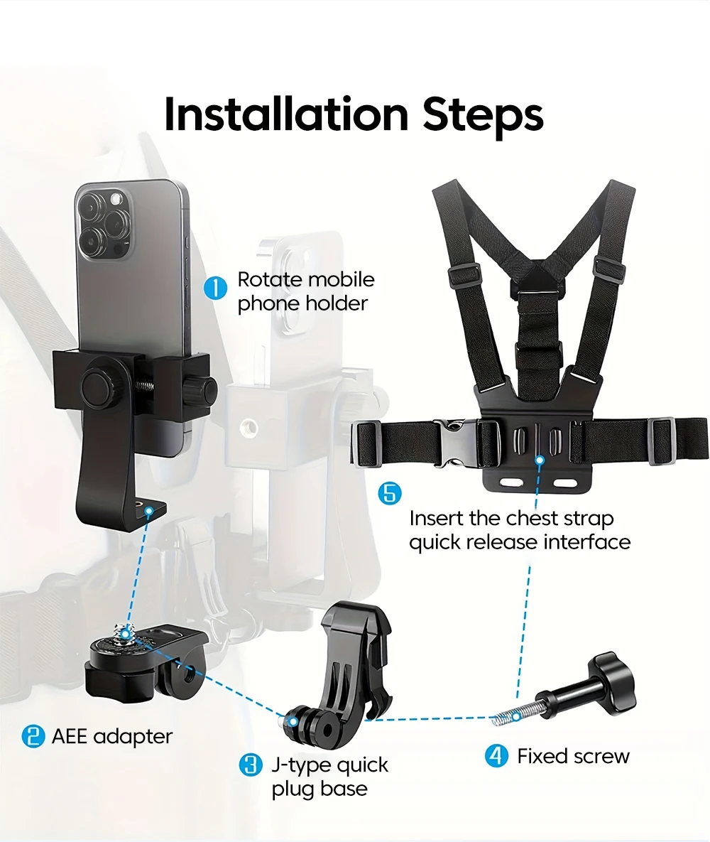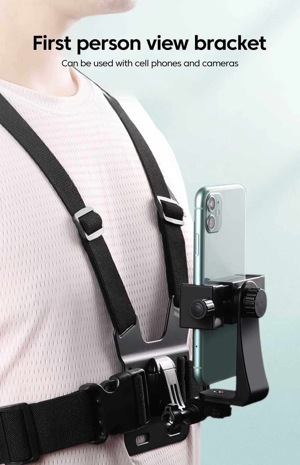 Cycling Chest Phone Holder: Can Freely Adjust the Size of the Chest Strap and Shooting Angle.
