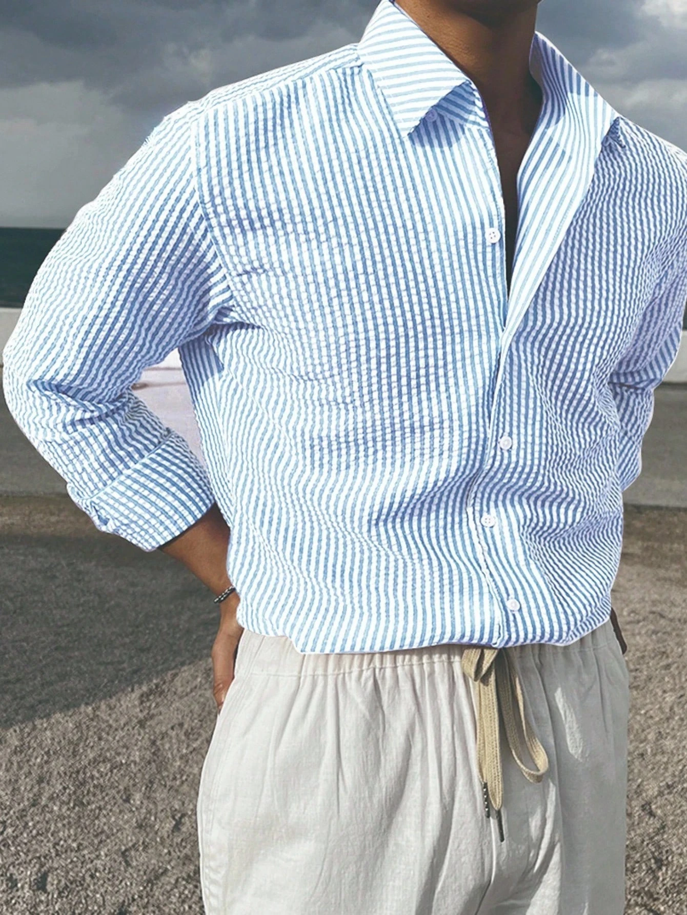Comfortable Striped Shirt For Men Textured Soft Fabric Long Sleeve Casual Home Wear Elegant Style