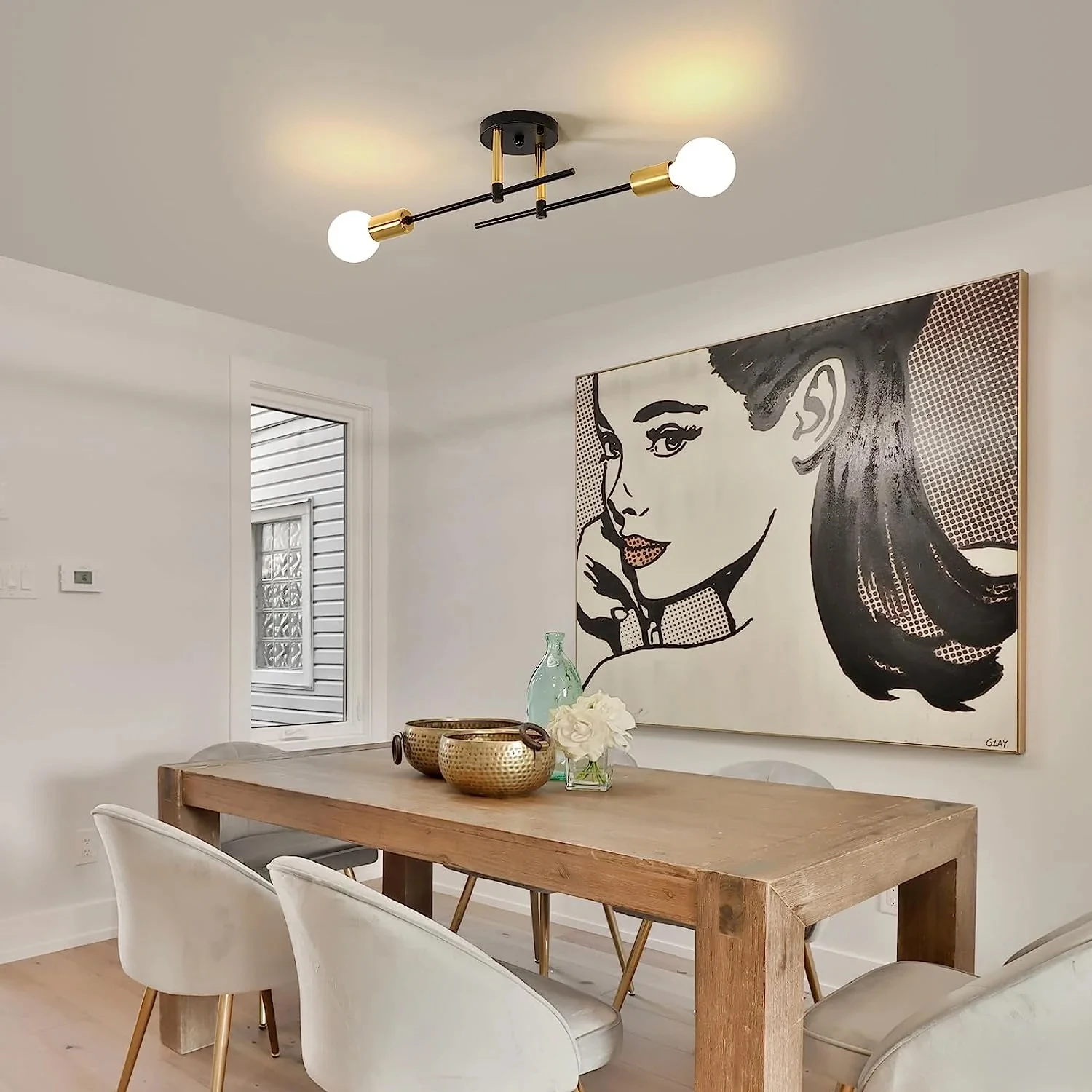 This ceiling light needs to be assembled by hand, which is very simple as all the cables are already connected, just connect the stem, screw in the screws and you have a stylish and elegant ceiling light.