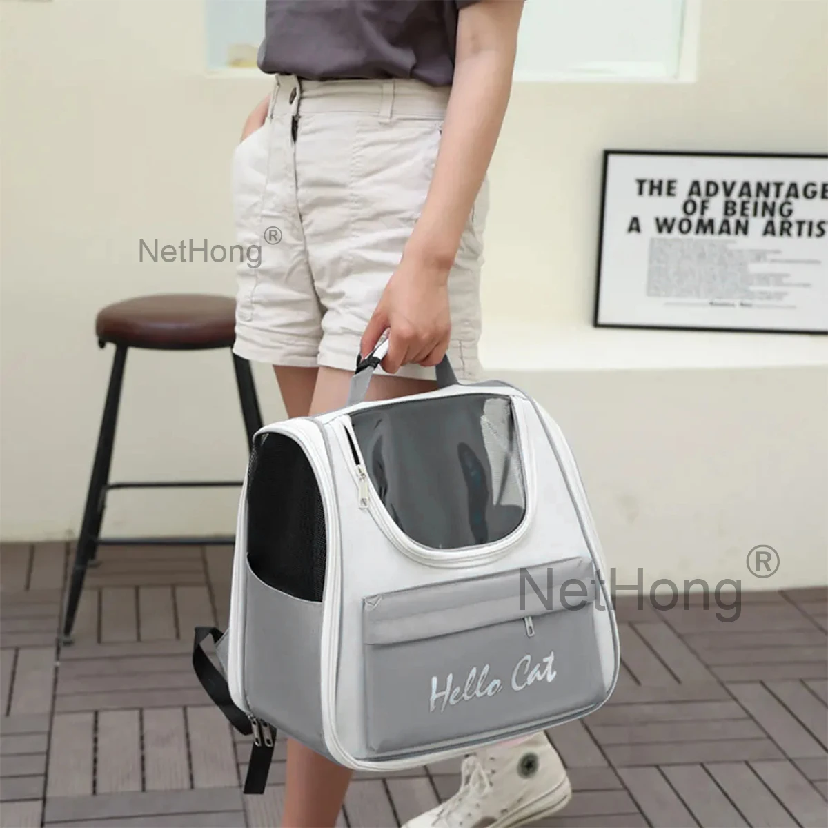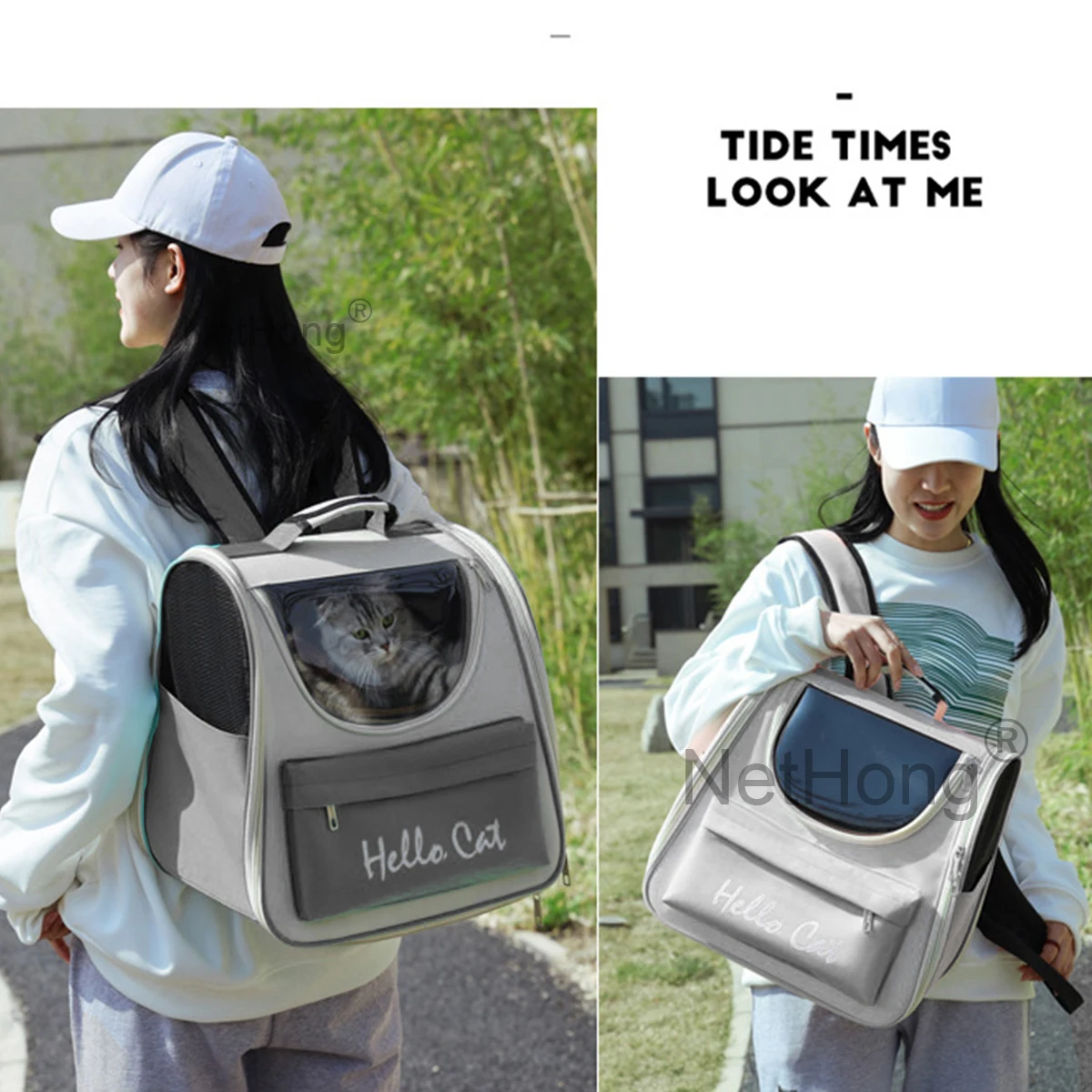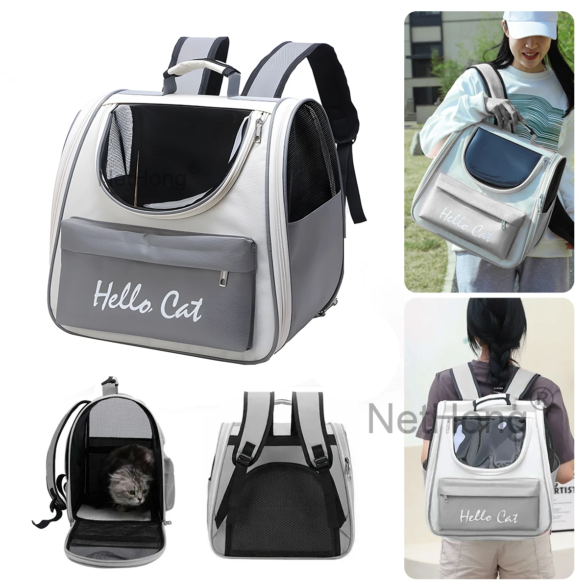 • Portable Pet Backpack : Designed as a stylish square pet backpack, it allows your cat to travel in comfort and safety.