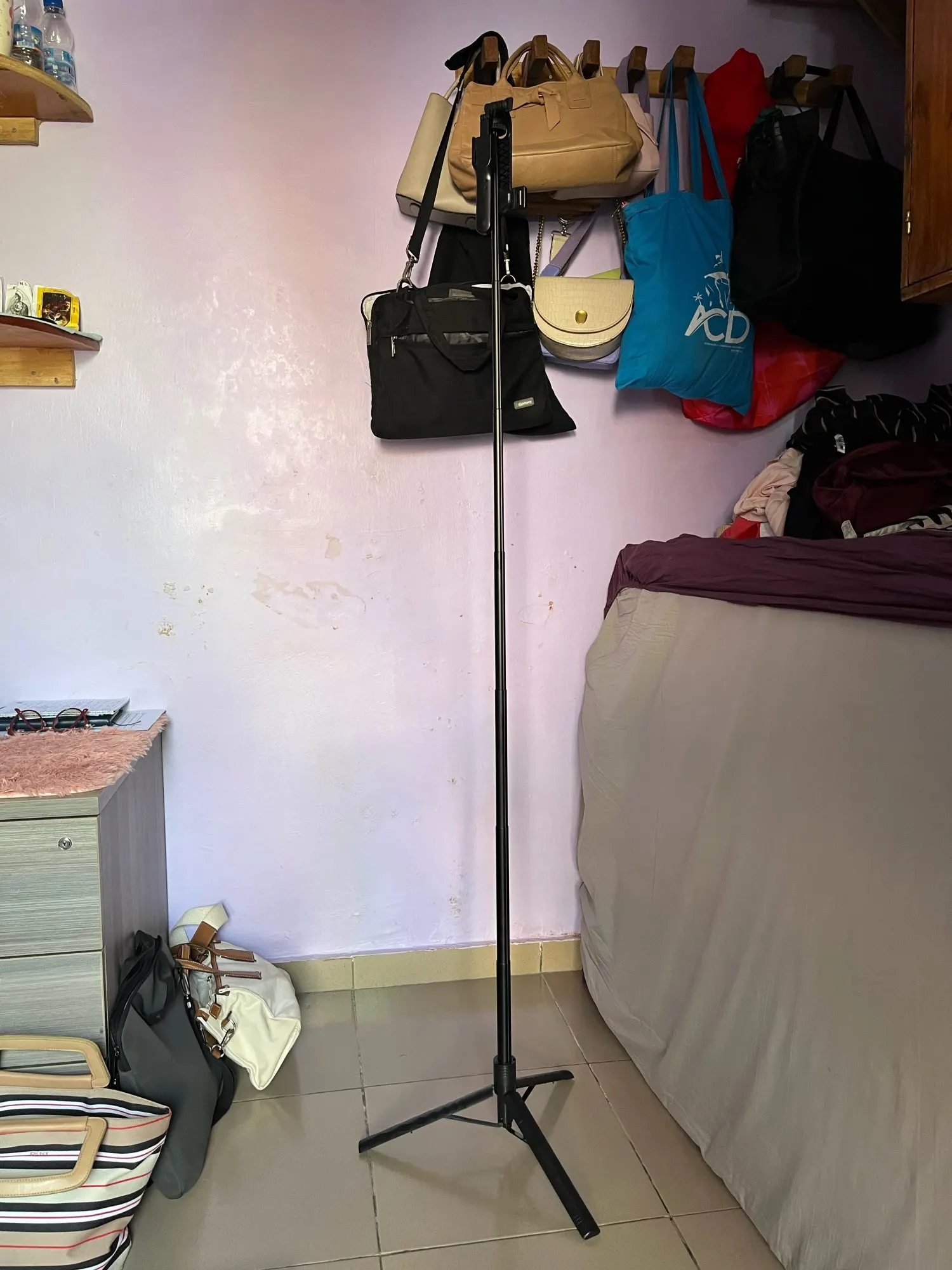 The tripod does my business, it is long as you see on the photo, I especially like the practical side you can put it in the handbag really I like