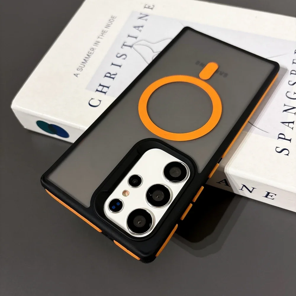 for Magsafe Transparent Matte Case for Samsung Galaxy S24 S22 Ultra S23 Plus Magnetic Hard Acrylic Ultra Slim Shockproof Cover