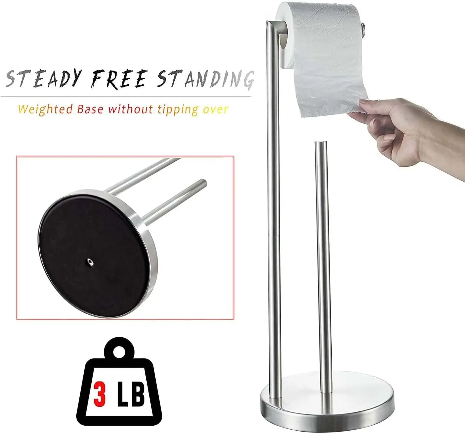 【High Quality】: Our freestanding toilet roll holder is crafted from high-quality stainless steel, ensuring long-lasting durability. With its rust-proof finish, this stand-up toilet paper holder is built to withstand corrosion and last for years.