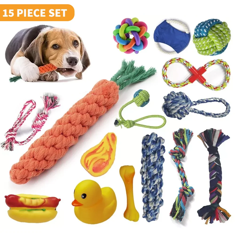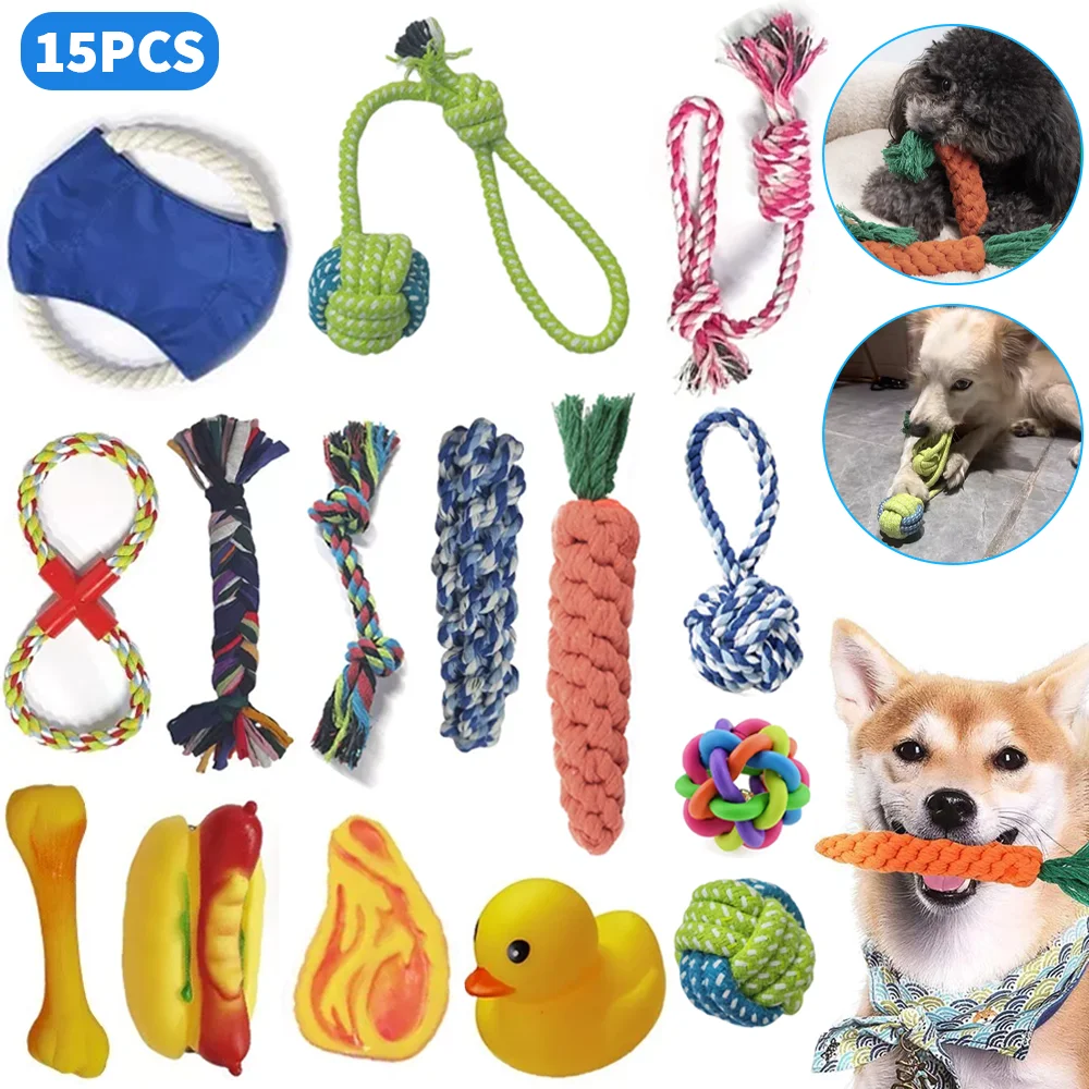 15pcs Dog Plush Toy, Dog Plush Toy Set, Tough Strong Knot Ball, Pet Puppy Teething Toy set, Interactive Training Play: 3 – 5 Days Free Delivery Only UK