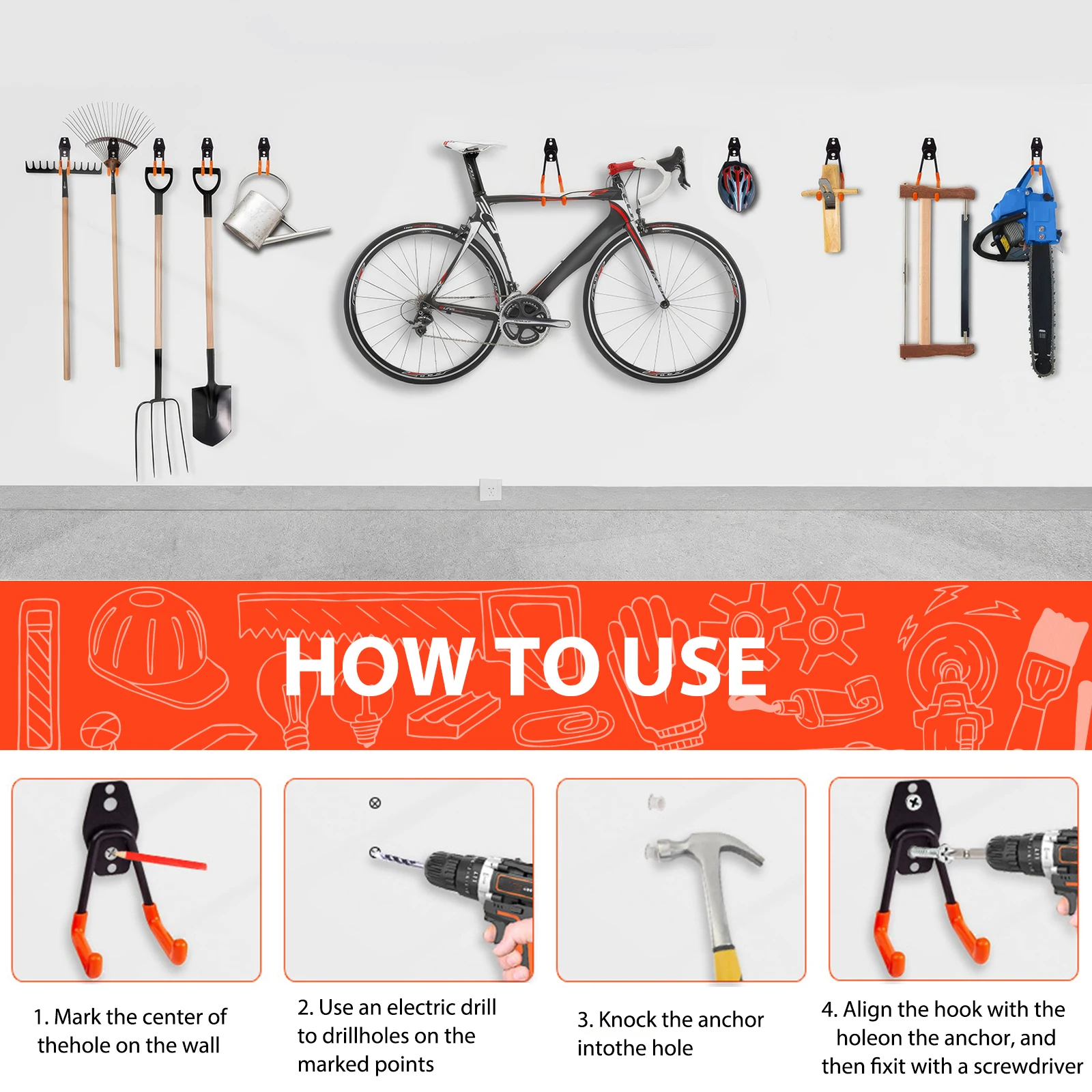 Versatile Storage Solution: This kit includes a total of 8 hooks. You’ll have plenty of space to hang a variety of items in your garage. From bikes and ladders to brooms and shovels, this kit can accommodate it all.