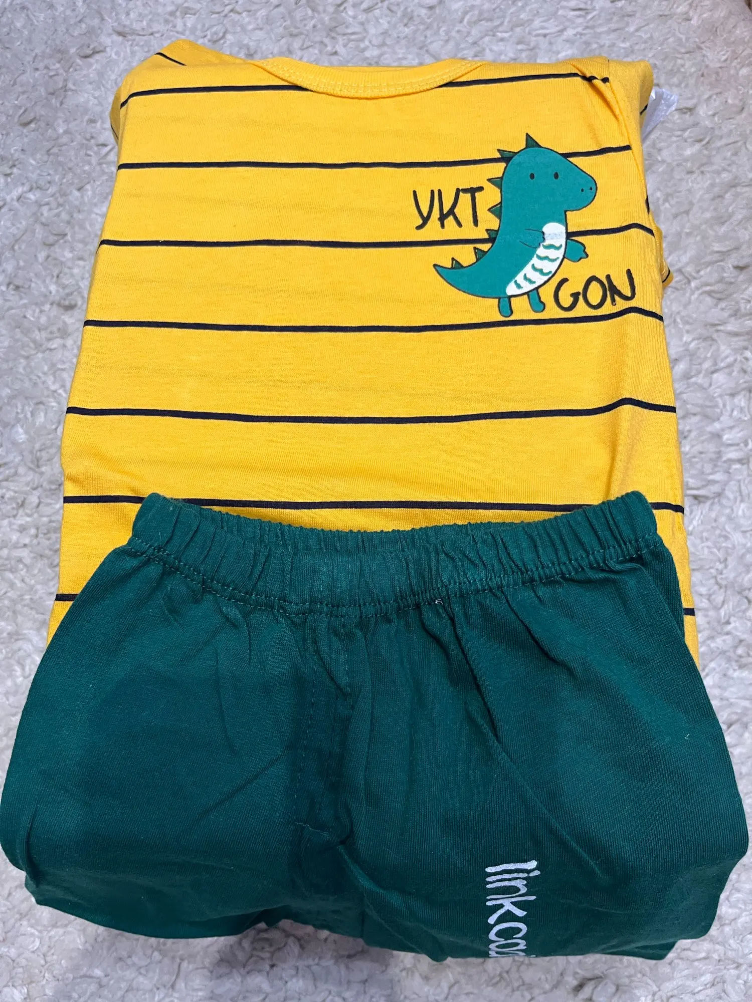 Nice set, cool for summer, it is a little too big for my son, so it will last for a few years, the fabric is fine, it is not too thick or too thin, it comes with a button on the top for the head, I really liked it, Arrived quickly in Peru, I recommend the product.