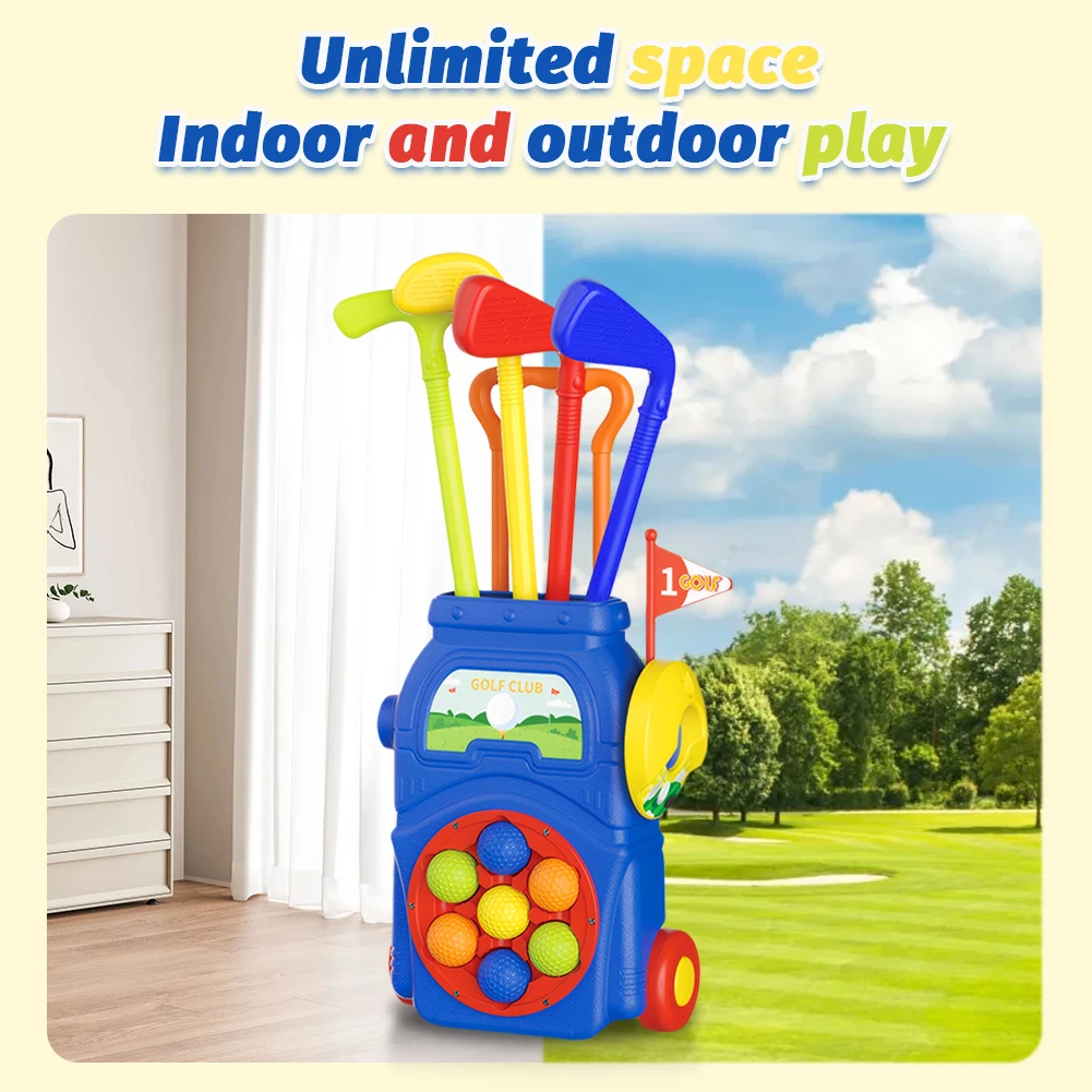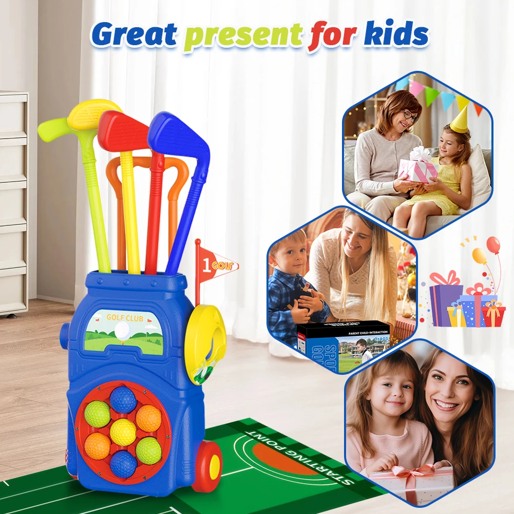 Children Golf Set Includes 4 Golf Clubs 7 Golf Balls & Golf Cart Indoor and Outdoor Golf Toys Birthday Gifts for 3 4 5 6 Year Old Kids