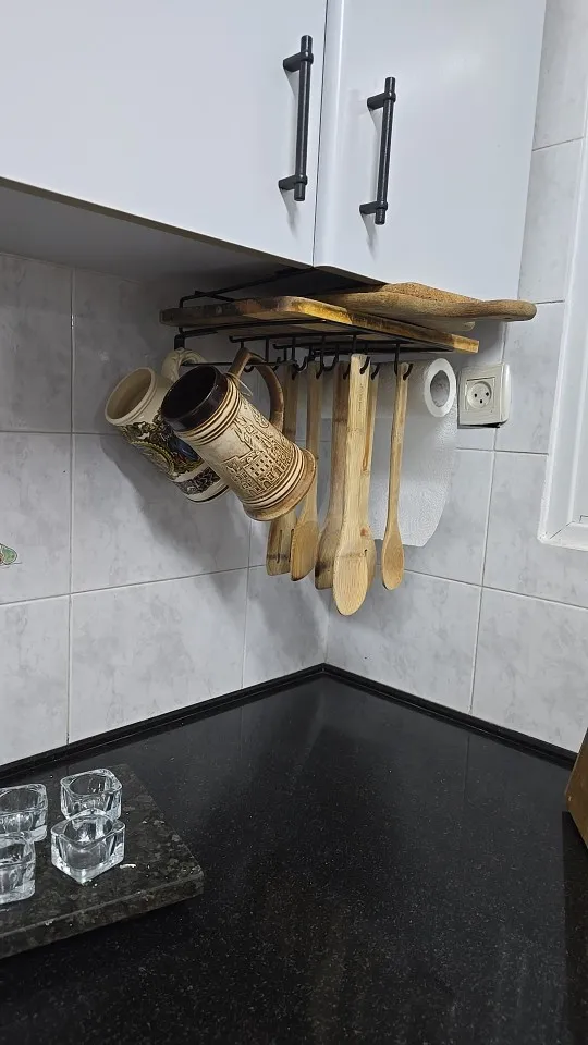 70 reviews for Kitchen Hanging Organizer Rack with Hooks Under Cupboard Paper Towel Rags Hanger Cutting Board Pot Cover Holder Storage Shelf