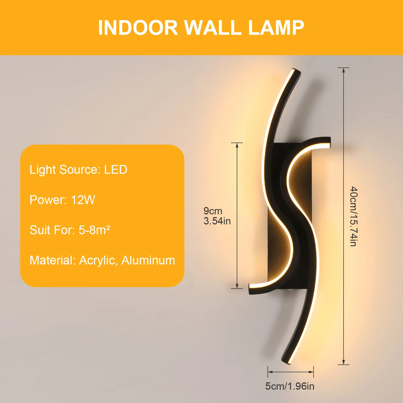 LED Wall Applique, Black Interior Wall Lamp, Warm White Light 3000K Modern Curve for Bedroom, Living Room, Corridor, White [Energy Efficiency Class E]