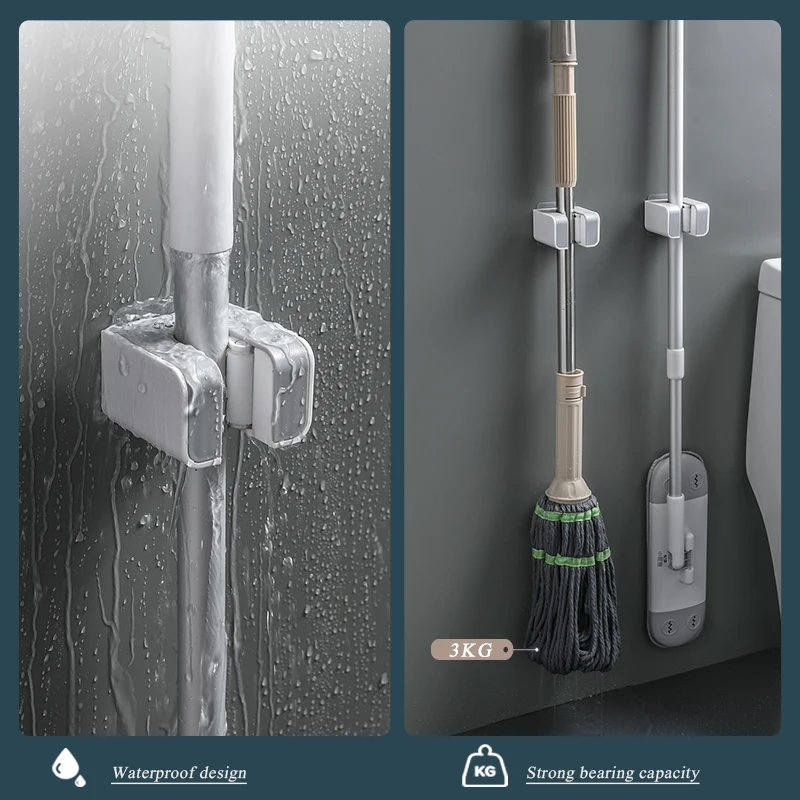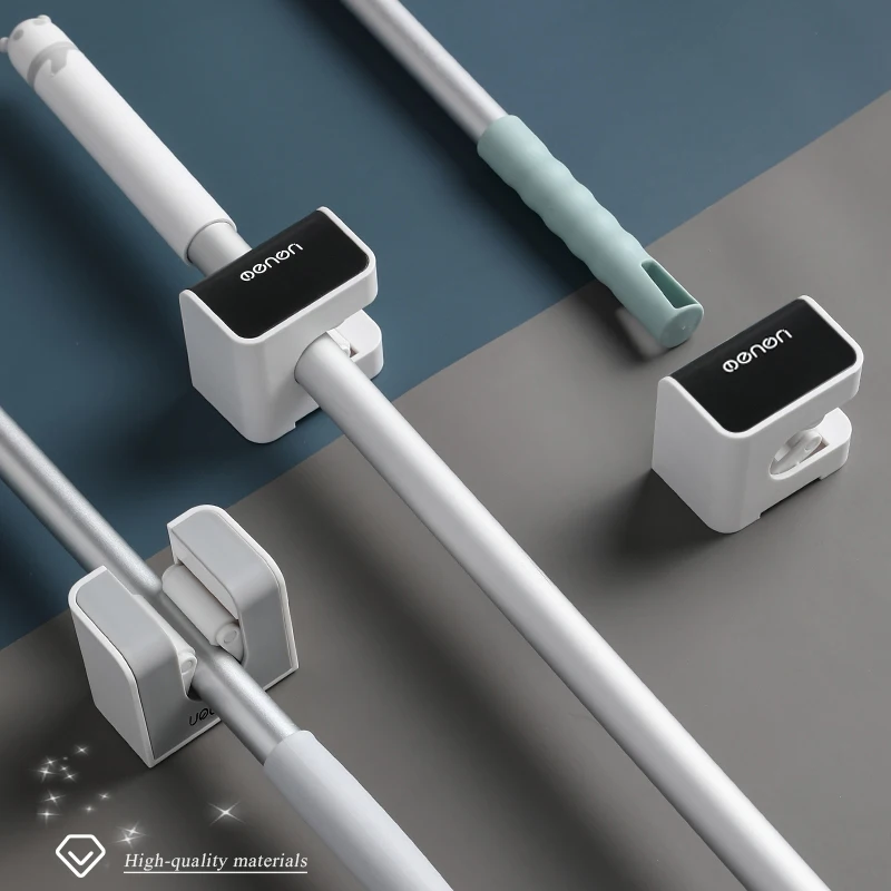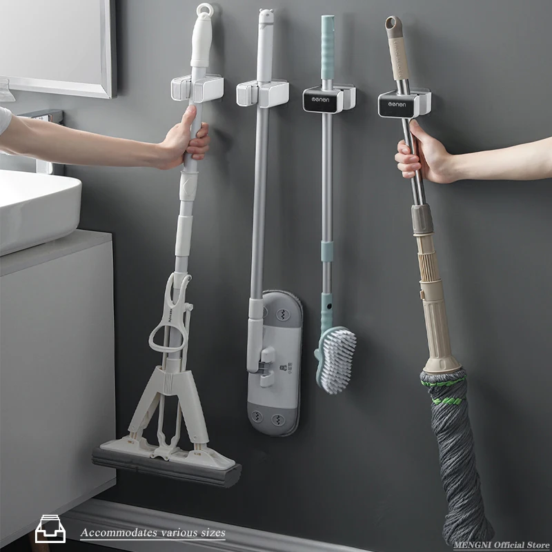 MENGNI Wall Mounted Mop Broom Holder Adhesive Multi-Purpose Hooks Broom Hanger Kitchen Bathroom Accessories Sets