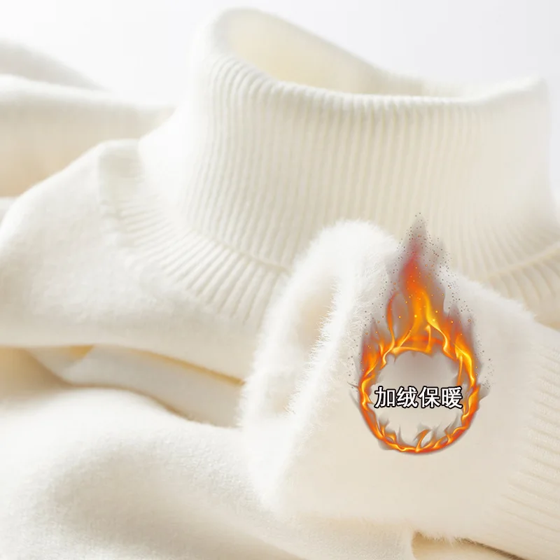 Men‘s Thermal Fleece High-neck Sweater Winter Turn-down Collar Fleece-lined Knitted Pullover Casual Keep Warm Thick Bottom Tops