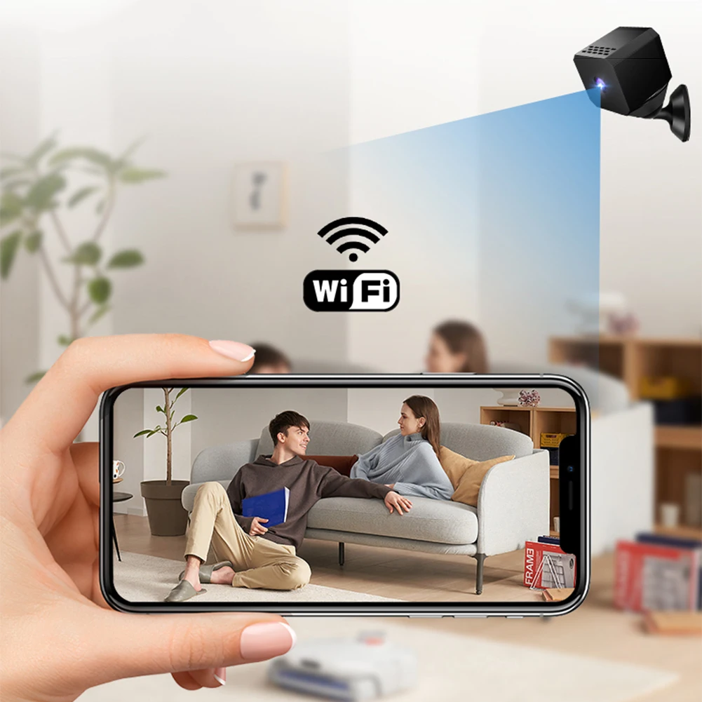Features: 1.No Network Required: The camera comes with a built-in AP hotspot, allowing you to connect your phone directly to the mini wifi camera for real-time monitoring without any network. Stay connected and secure with ease. 2.Clear Night Vision 24/7: Equipped with high-power infrared night vision lights, the security camera provides clear visibility even in complete darkness. Enjoy continuous monitoring around the clock for complete peace of mind. 3.Real-Time Motion Detection: The intelligent motion detection feature of this wireless nanny cam instantly captures movement and sends real-time alerts. Stay informed of any unexpected activity no matter where you are. 4.Magnetic Base: This surveillance camera includes a magnetic base, eliminating the need for drilling holes. It offers flexibility to meet various application scenarios easily. 5.Mini Concealed Design: With its compact cube shape, this mini wifi camera takes up minimal space. It’s easy to hide and convenient to carry – ideal for home, office, or travel use.Specification: Main control chip: BK Memory: Maximum support 128G (not included) Interface: MicroUSB2.0 5PIN Battery capacity: 200mAh Battery type: polymer battery Battery voltage: 3.7V Image format: JPG Video compression format: H.264 Video format: AVI Working temperature: -10 to 50℃ WIFI distance: 50 meters without obstruction Storage temperature: -10 to 70℃ Humidity environment: 5%-90% (No condensation) Product size: 33*33*32.5mm/1.3×1.3×1.28inch Note:
