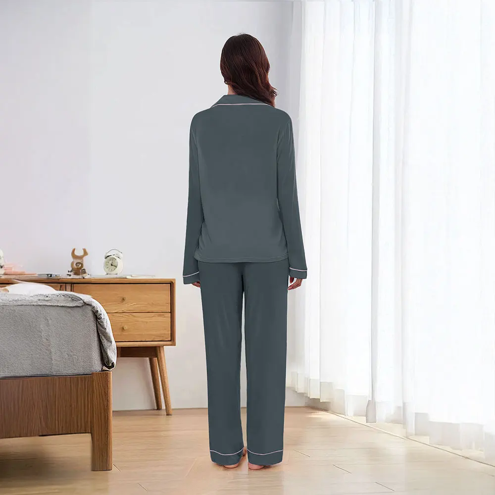 This loungewear set combines casual comfort with effortless style, making it perfect for both indoor relaxation and sleepwear. The clean, solid-color design offers a simple yet elegant look that ensures you are always presentable, even with unexpected guests. The relaxed fit guarantees all-day comfort, while the delicate stitching details add a sophisticated touch. Whether you are unwinding at home or stepping outside for a brief