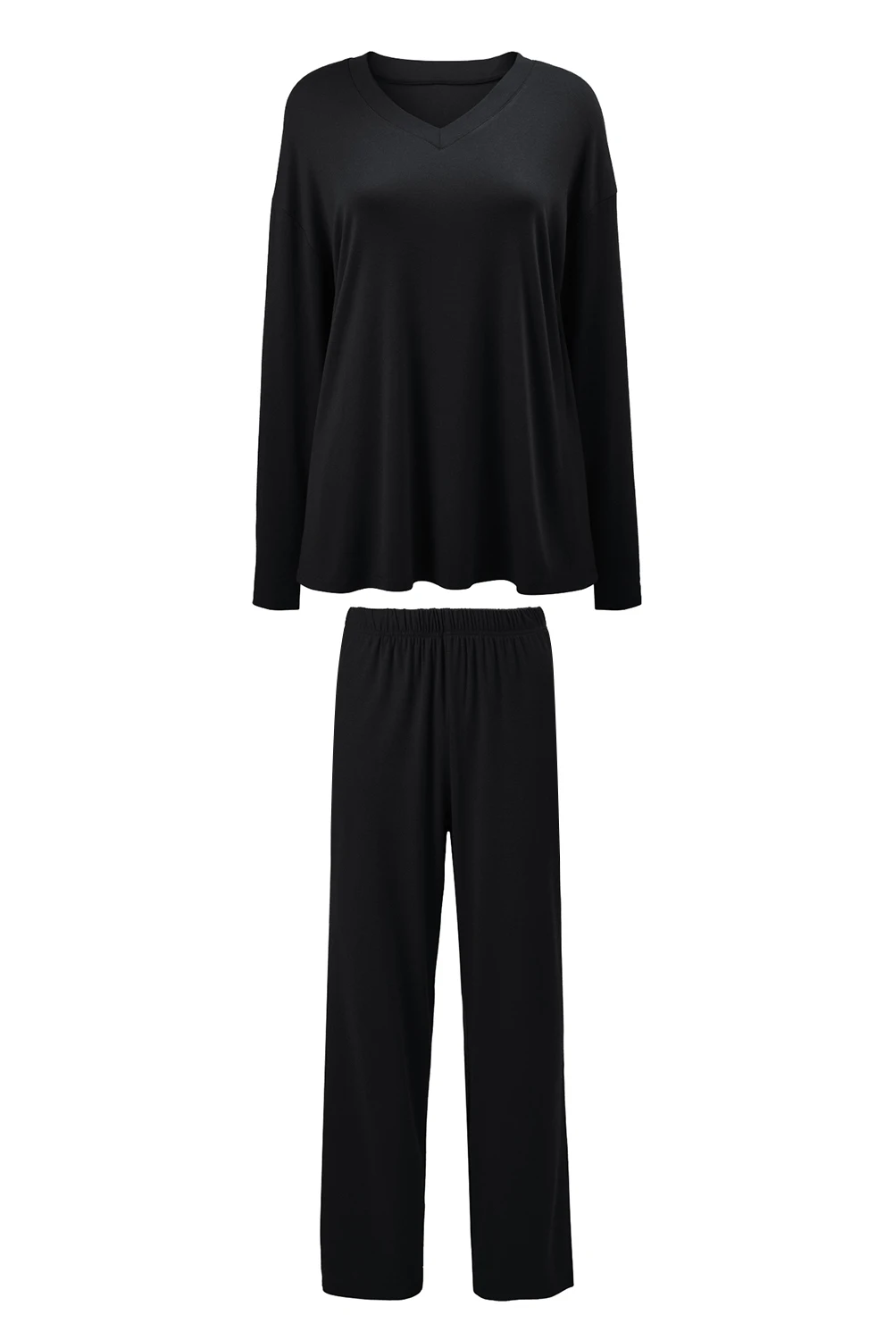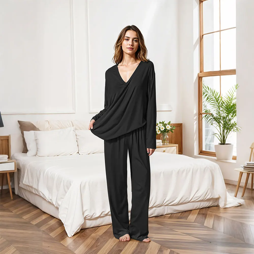 This loungewear set is crafted from soft, skin-friendly viscose fabric, ensuring excellent moisture absorption and a comfortable wearing experience. The loose fit and elastic waistband further enhance overall comfort and flexibility, meeting your basic requirements for loungewear. At the same time, its simple design allows for easy mixing and matching with other garments, perfect for creating versatile layered looks. Whether you are relaxing at home or out for a stroll, this set lets you enjoy unparalleled ease and confidence, perfectly combining comfort with style.