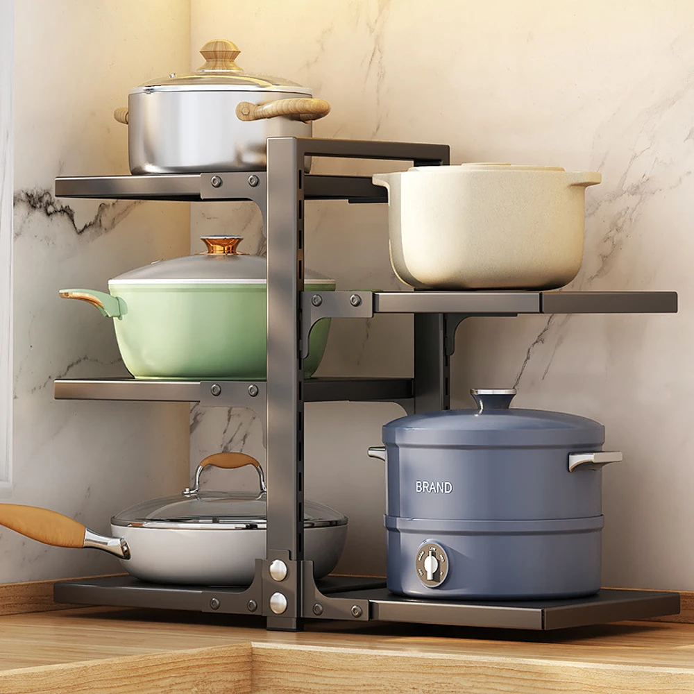 In the kitchen, quality is in the details. This pan organizer rack features a smooth, easy-to-clean surface for quick maintenance and a spotless look. The non-slip base ensures stability, even during busy cooking. Its compact design fits neatly under the sink or in kitchen corners, saving space and keeping countertops clutter-free. The freestanding structure adds stability and prevents tipping for added safety. This pan organizer rack is a must-have for any kitchen, ideal for both daily use and special occasions.