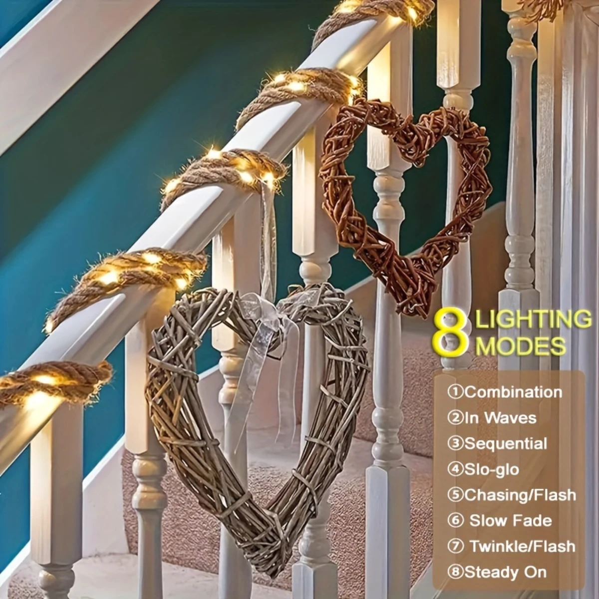 2025 New Outdoor Solar Hemp Rope Light String 5M 100LED Waterproof 8 Mode Solar Floodlight for Courtyard and Garden Decoration