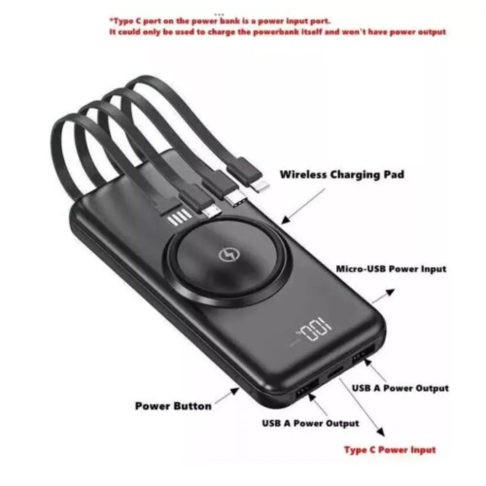 [ 4 of 1 output port ] The portable charger with built-in cable, built-in mini-cable type C cable and Iphone cable is a total of 3 cables and 2 USB output