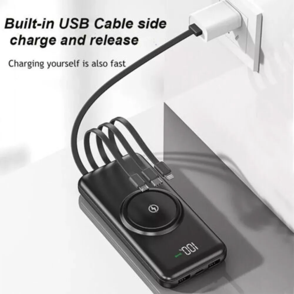 Portable charger with built-in cable.