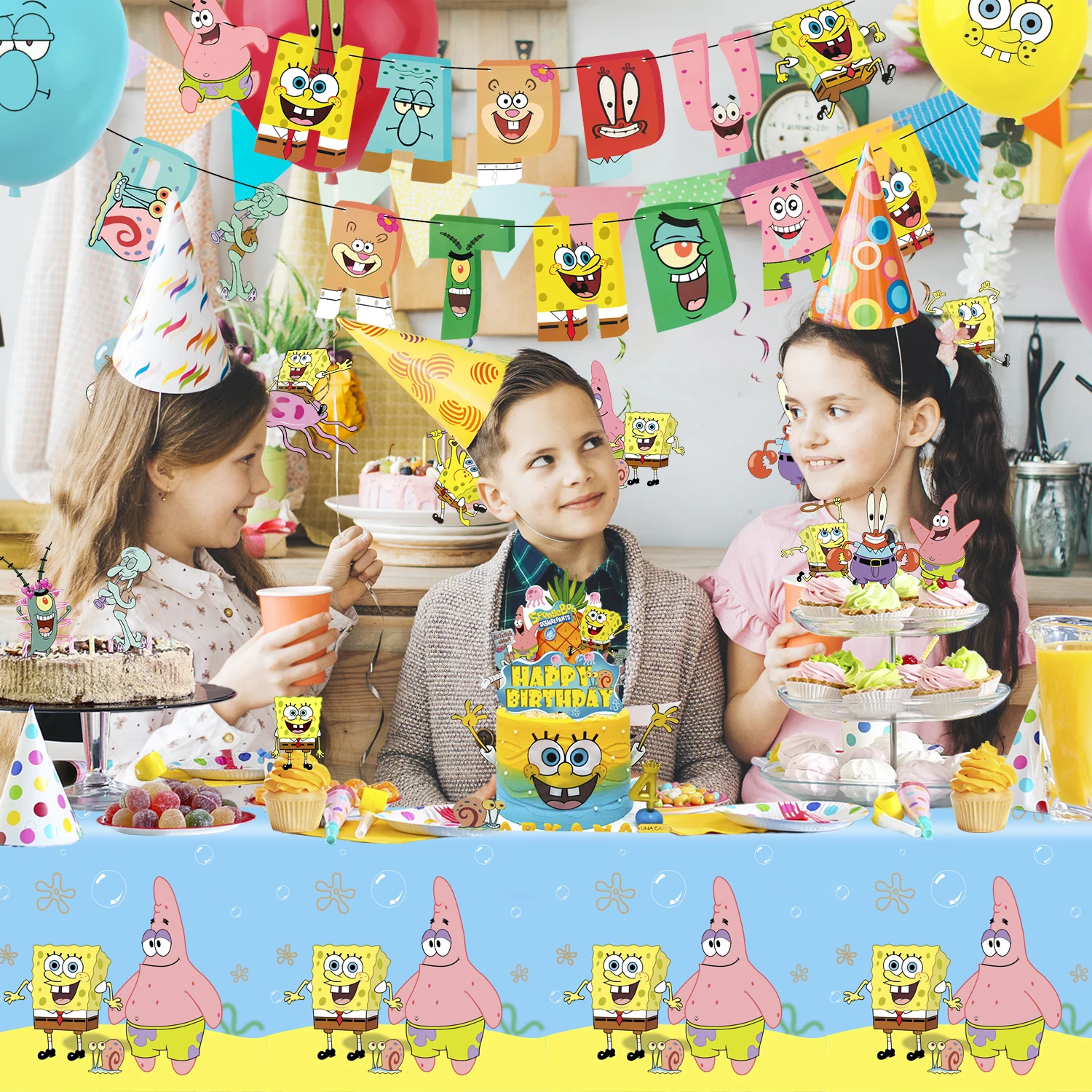 Our SpongeBob birthday party supplies include 1 SpongeBob cake toppers, 1 SpongeBob party tablecloth, 2 SpongeBob foil balloons, 12 SpongeBob cupcake toppers and 15 SpongeBob latex balloons etc SpongeBob birthday decorations.