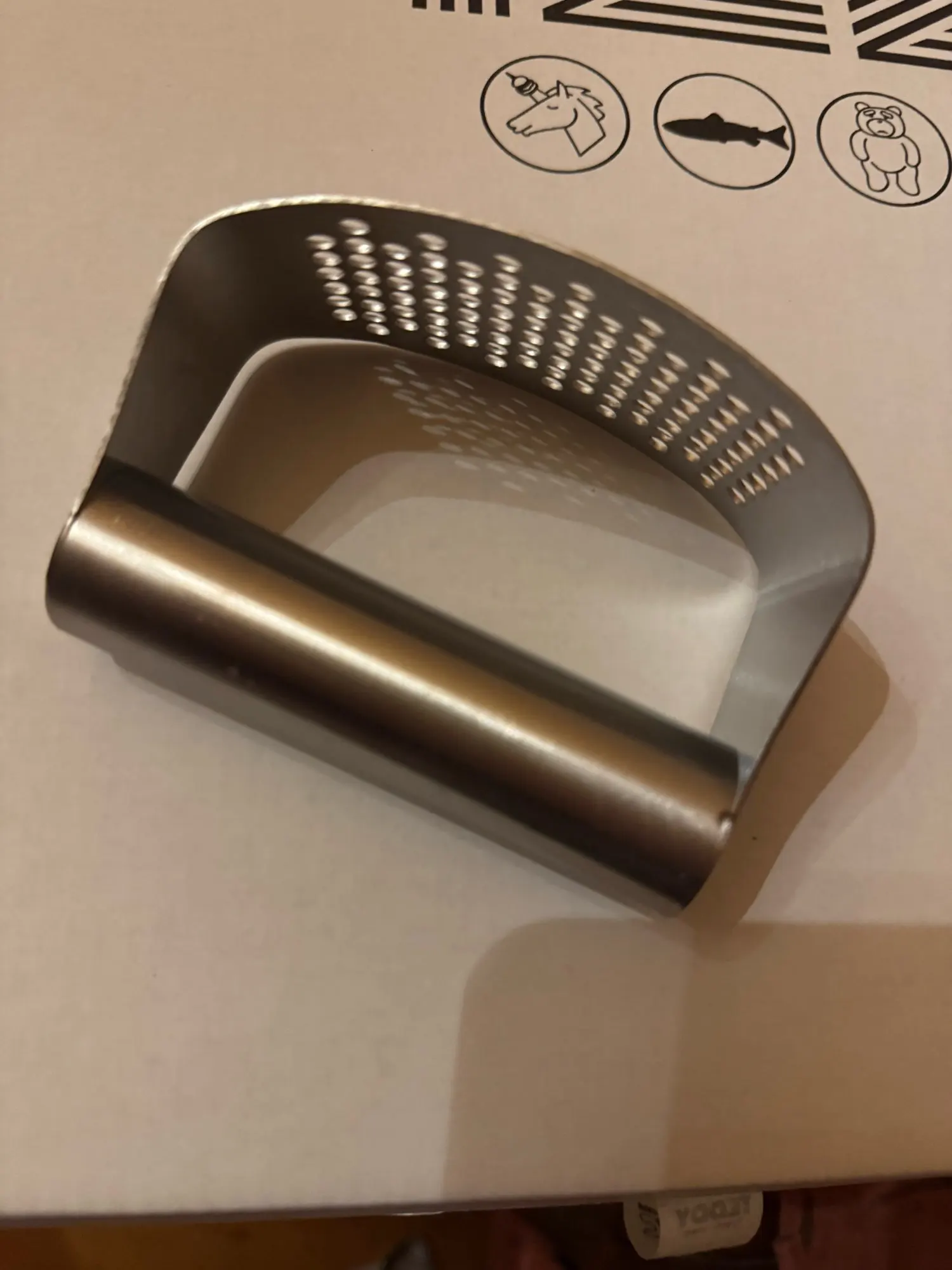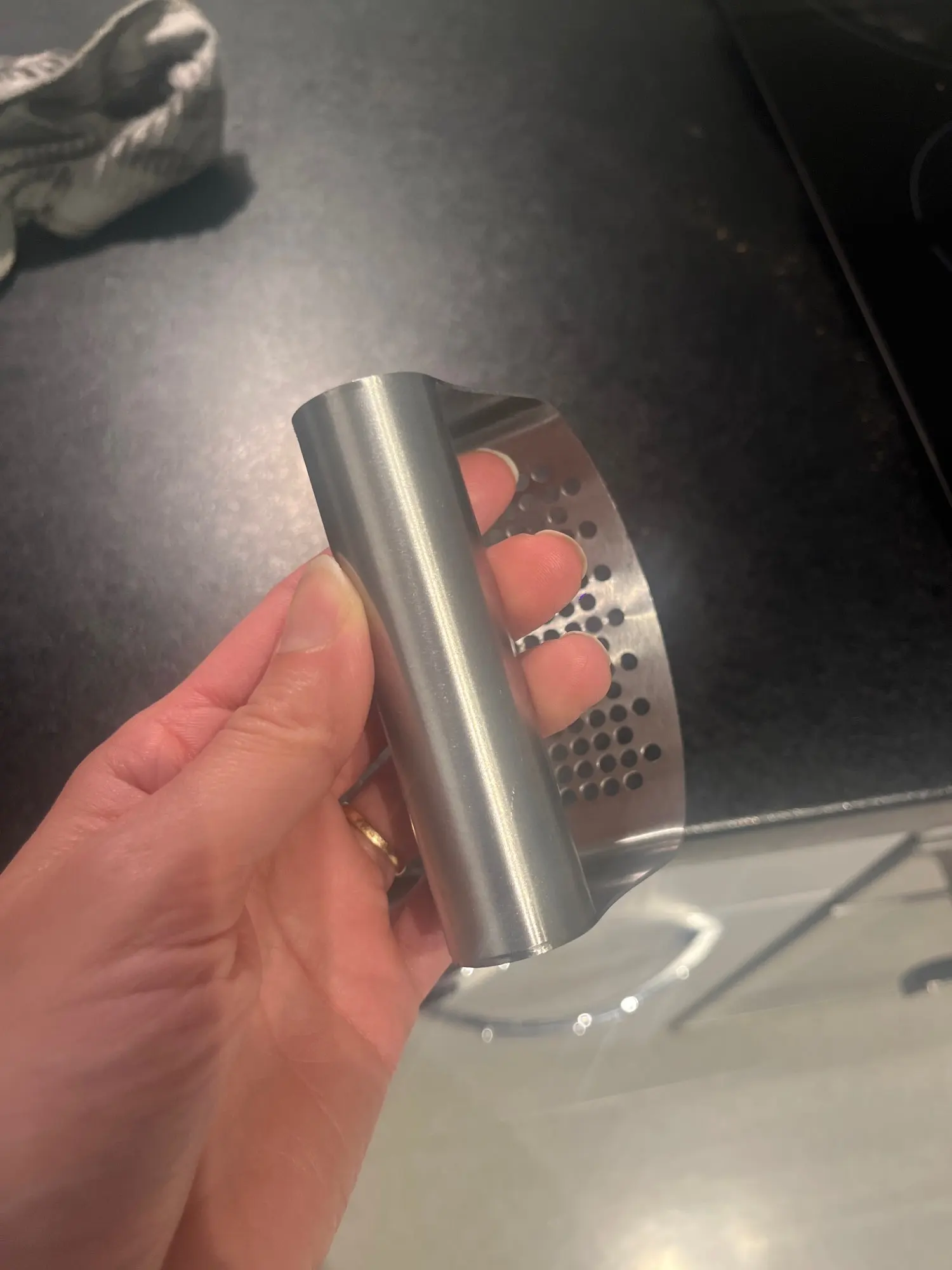 Effortlessly mince garlic with our stainless steel garlic press, a kitchen essential for quickest way to peel garlic and garlic aioli ingredients preparation.