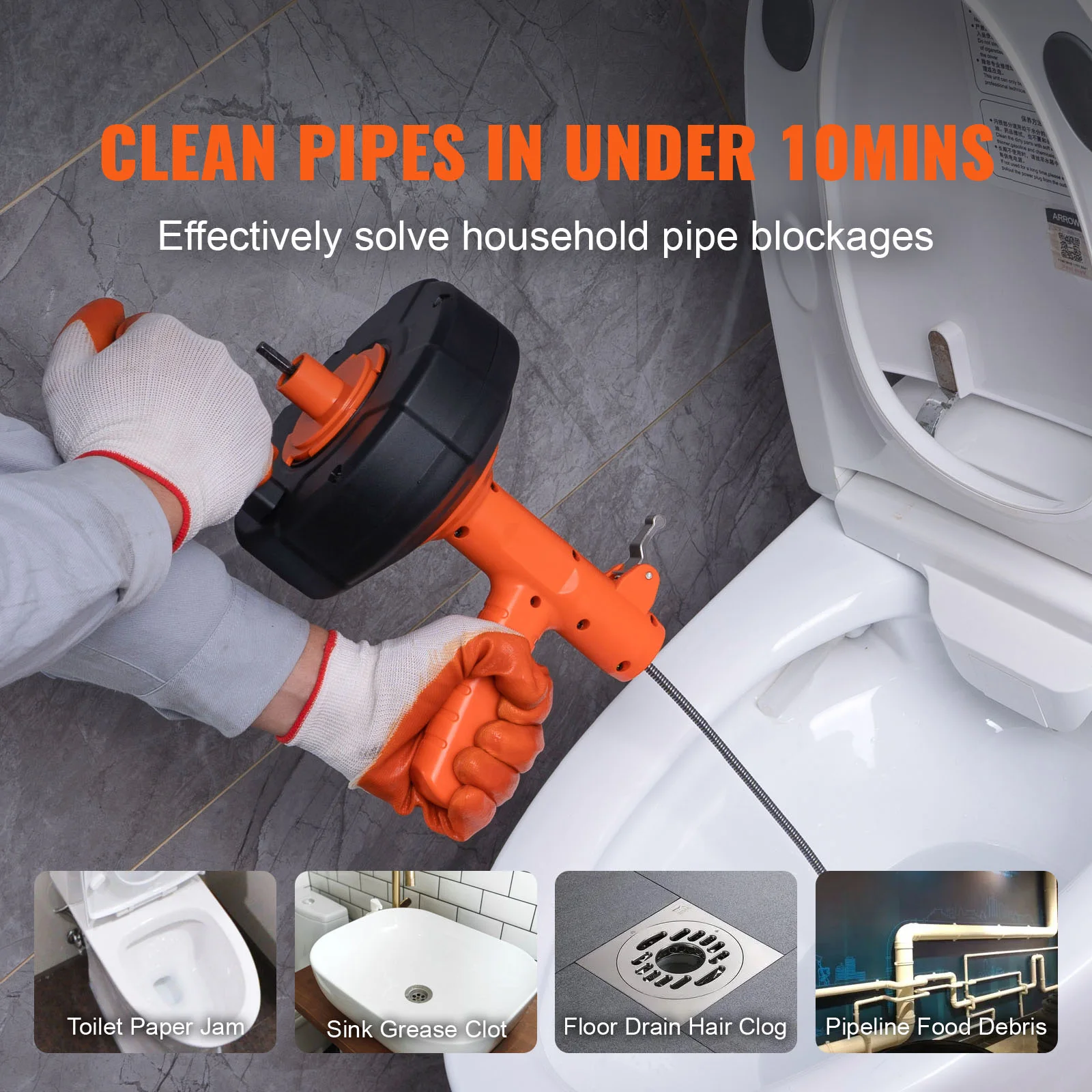 - Used With Electric Drills: Breakthrough operation limitations! Equipped with an integrated electric drill adapter head, our drum auger plumbing drain snake can be adapted to most electric drills. Excellent hand/electric dual-use design is easy and efficient for you to remove blockages. A non-slip handle makes sure a stable operation. Even teenagers can also easily operate.