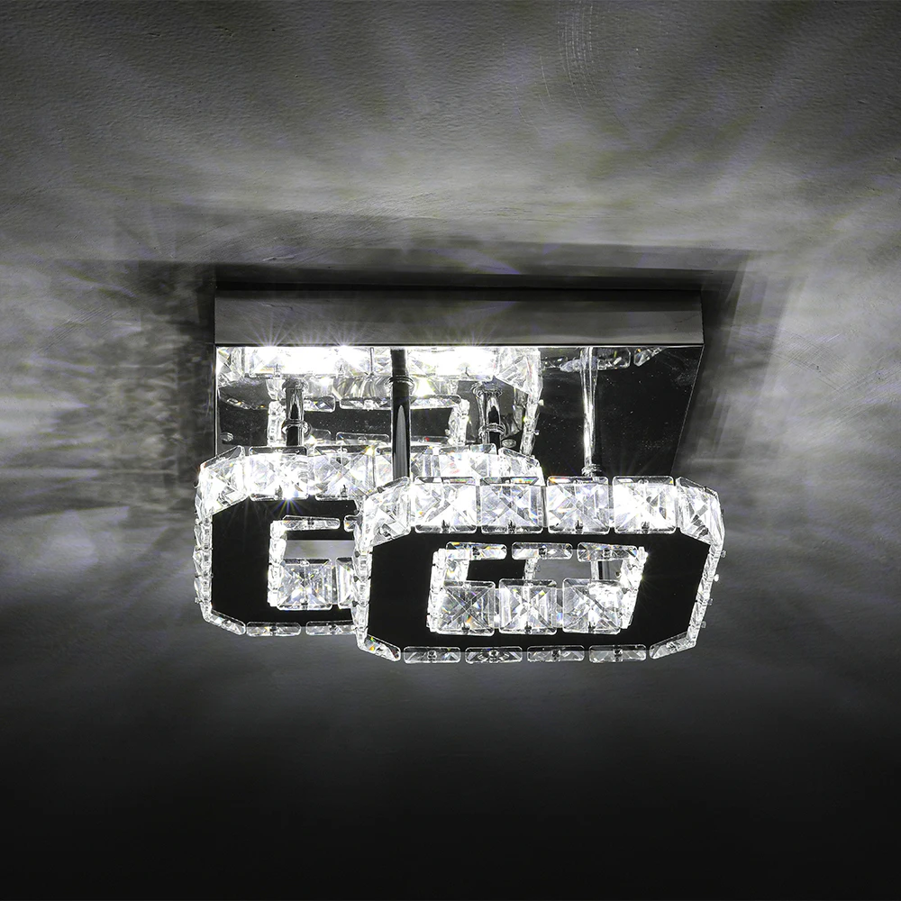 Add sparkle to your living room with this exquisite crystal ceiling light. Adorned with sparkling clear crystals, it dazzles in natural light, casting enchanting reflections when illuminated. As darkness falls, you can turn on the fixture for graceful illumination, and admire as it casts light and shadow patterns on the ceiling and wall. Crafted with stainless steel, the light boasts enduring strength and timeless beauty, ensuring it remains pristine even after years of use. Elevate your living space with bright light and a touch of luxury.
