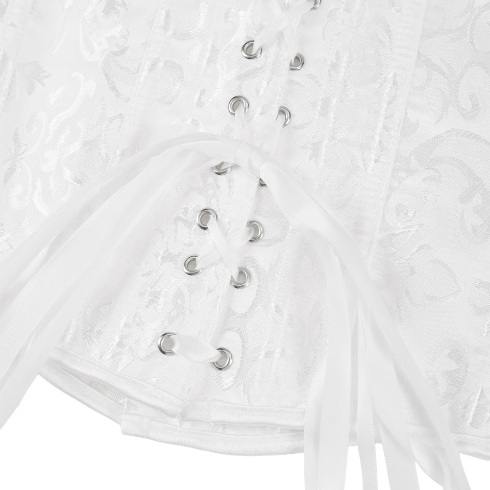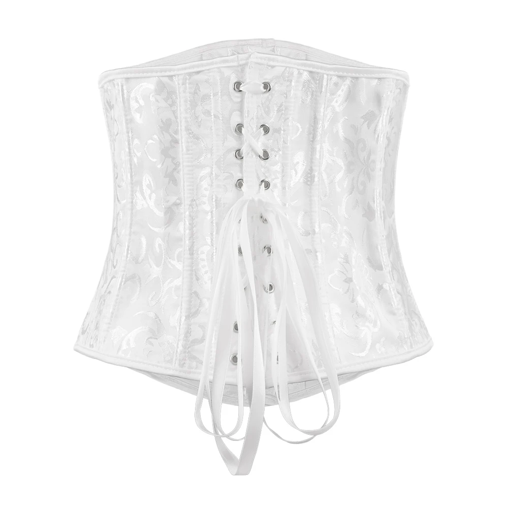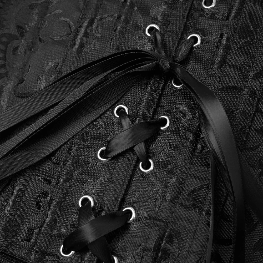 Shape your waist with elegance and ease using this waist cincher. The interior is equipped with flexible plastic bonings that provide robust support, while the exquisite stitching ensures a comfortable fit without any discomfort. The front is adorned with silver metal eye-hook closures, which add to its aesthetic appeal. Additionally, its intricate jacquard pattern adds a touch of vintage charm, making it a standout piece whether worn as inner shapewear or a fashion-forward accessory.