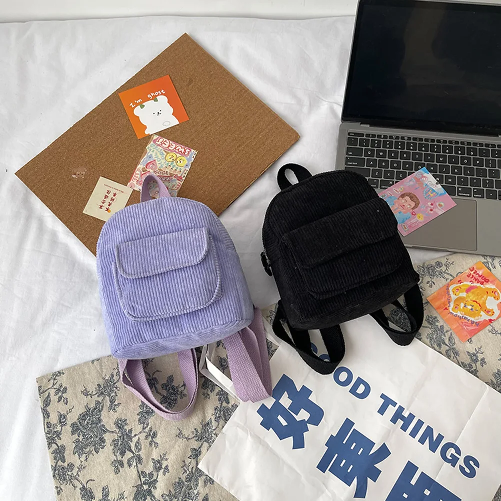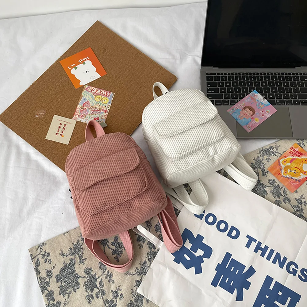Women Fashion Mini Backpack Corduroy Student Girls Bookbag Solid Color Retro Travel Backpack Student Book Bag for School Travel