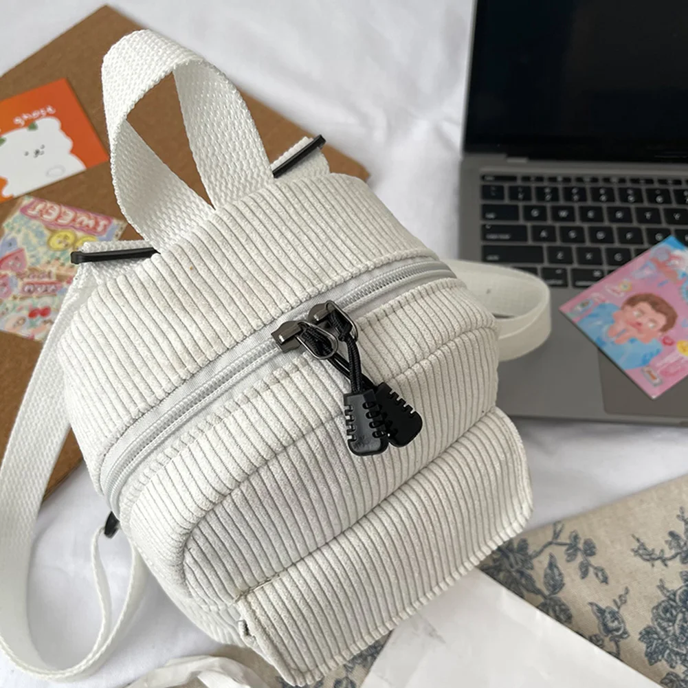 4. Versatile Mini Backpack: This mini corduroy retro travel backpack is not only a practical accessory but also a fashion statement. It effortlessly complements any outfit and is convenient to carry, making it suitable for short trips or casual day-to-day use.