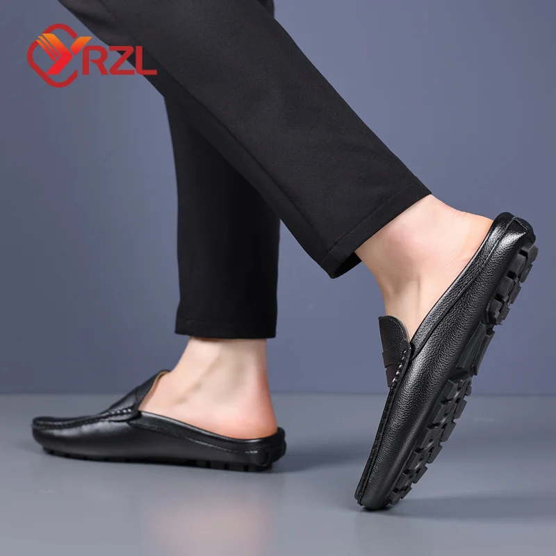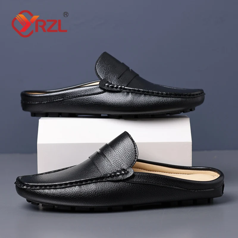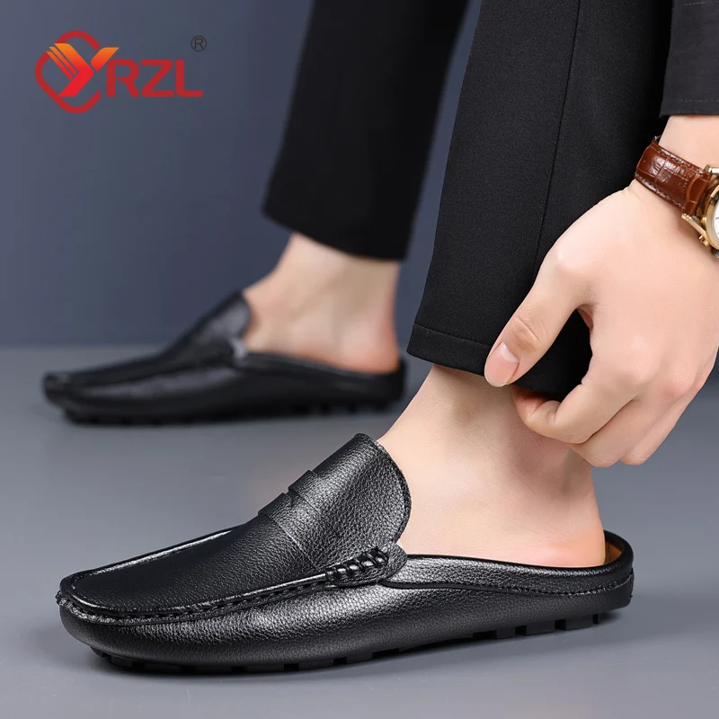 YRZL Loafers Summer Slip on Half Shoes for Men Leather Slippers Casual Breathable Comfy Loafers Moccasins Brown Black Beige